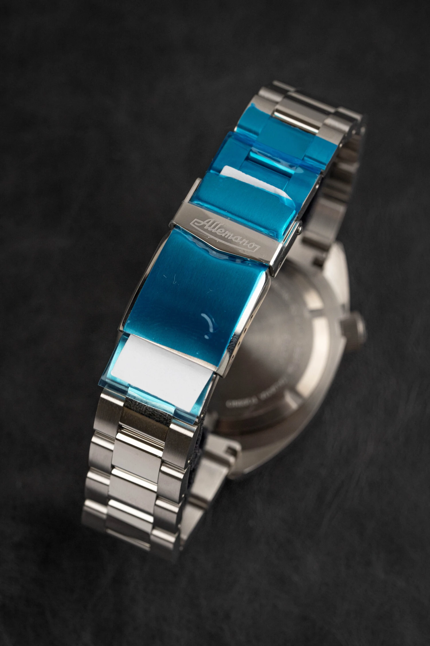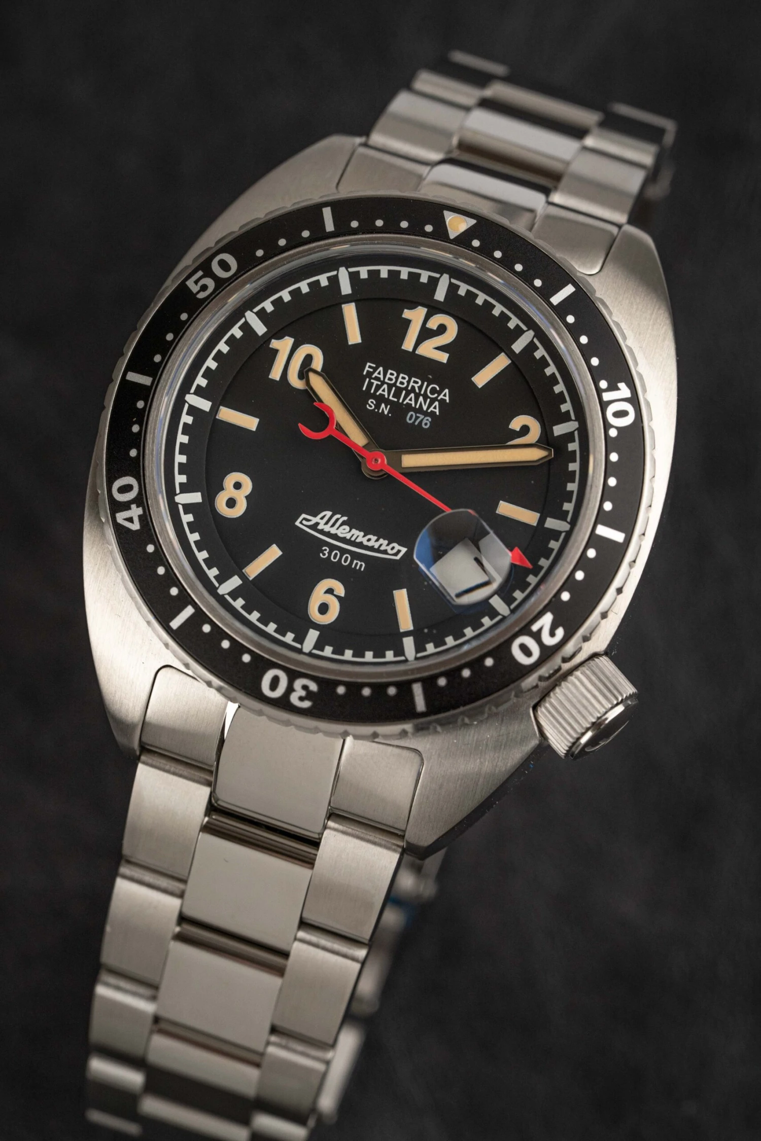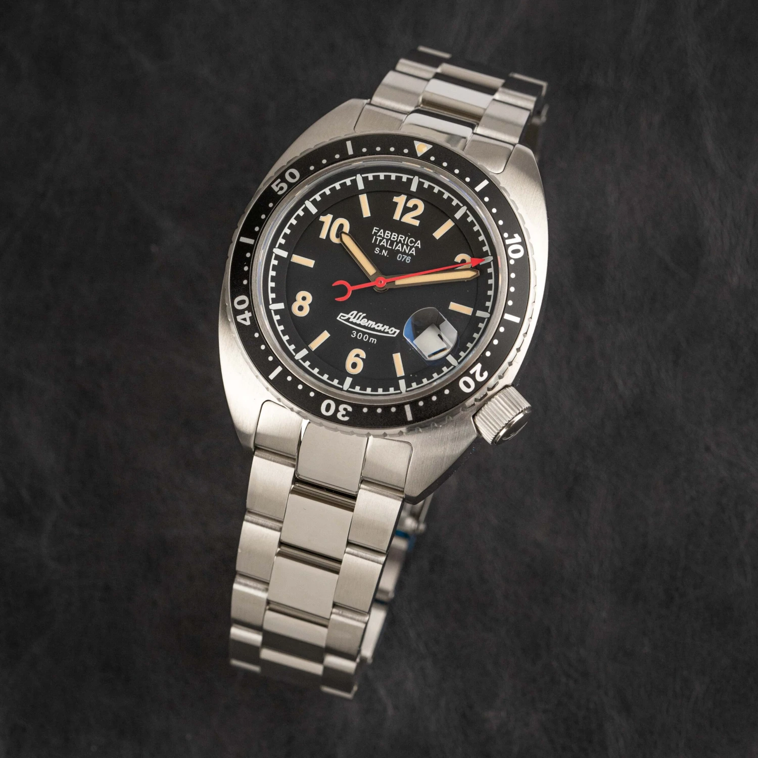 The Allemano 1973 SHARK series exemplifies precision and style with a robust 42mm stainless steel case and a uni-directional rotating bezel. The striking yellow dial is protected by a scratch-resistant sapphire crystal, ensuring durability and clarity. This exquisite timepiece features a 21mm stainless steel band, secured with a fold-over clasp with a safety release. Powered by a reliable automatic movement, it supports date, hour, minute, and second functions. The 1973 SHARK & CRAB series is a sophisticated addition to any watch enthusiast’s collection, blending rugged functionality with elegant design.