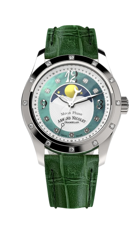 Case: 34mm x 11.25mm Case Size – Stainless Steel 316L Set With 12 Diamonds – Sapphire Crystal With Inside Antiglare Treatment And Sapphire Crystal On Screwed Back