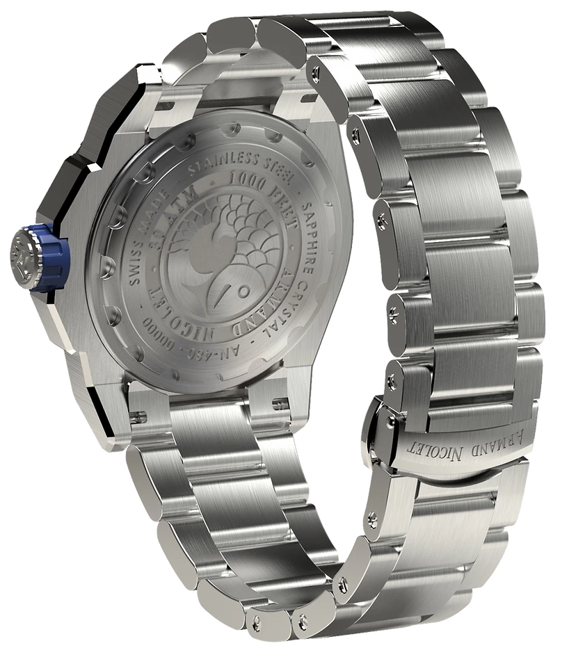 Strap / Bracelet: Stainless Steel 316L Bracelet with Stainless Steel Deployment Buckle.