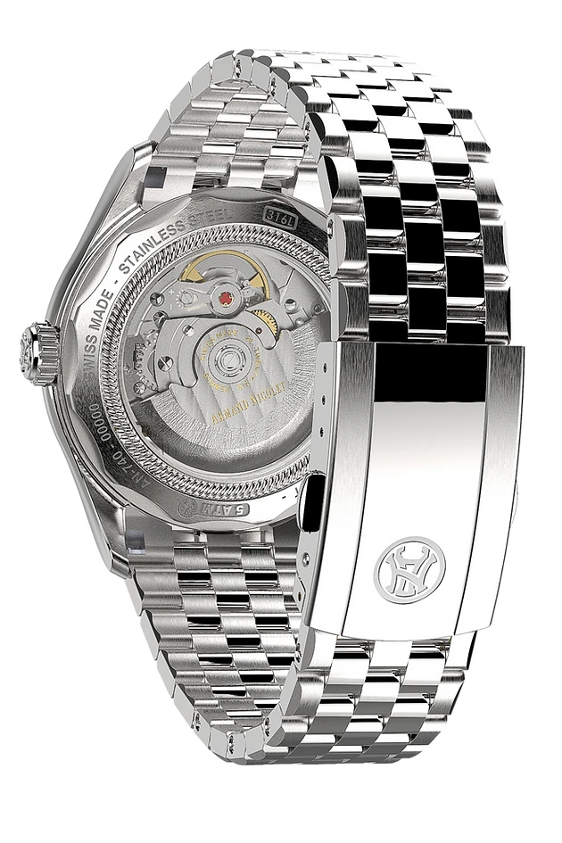 Movement: Swiss Made Automatic Movement – Mechanical – Automatic With A Power Reserve Of 38 Hours – Calibre Date AN200 Based On SW-200 Modified Per Armand Nicolet’s Specifications.