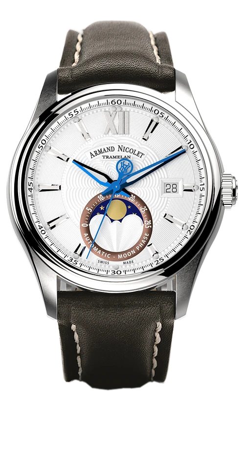 Movement: Swiss Made Automatic Movement – Mechanical – Automatic With A Power Reserve Of 38 Hours – Moon Phase & Date AN280 (Based On SW-280 Modified Per Armand Nicolet’s Specifications)