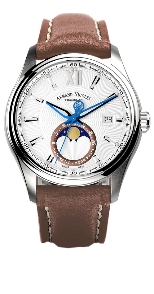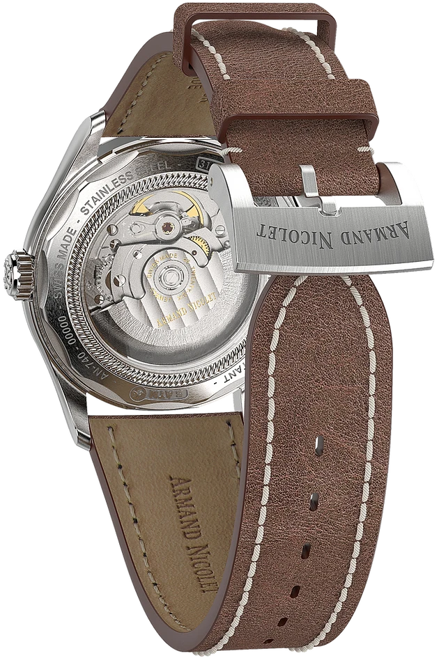 Movement: Swiss Made Automatic Movement – Mechanical – Automatic With A Power Reserve Of 38 Hours – Moon Phase & Date AN280 (Based On SW-280 Modified Per Armand Nicolet’s Specifications)