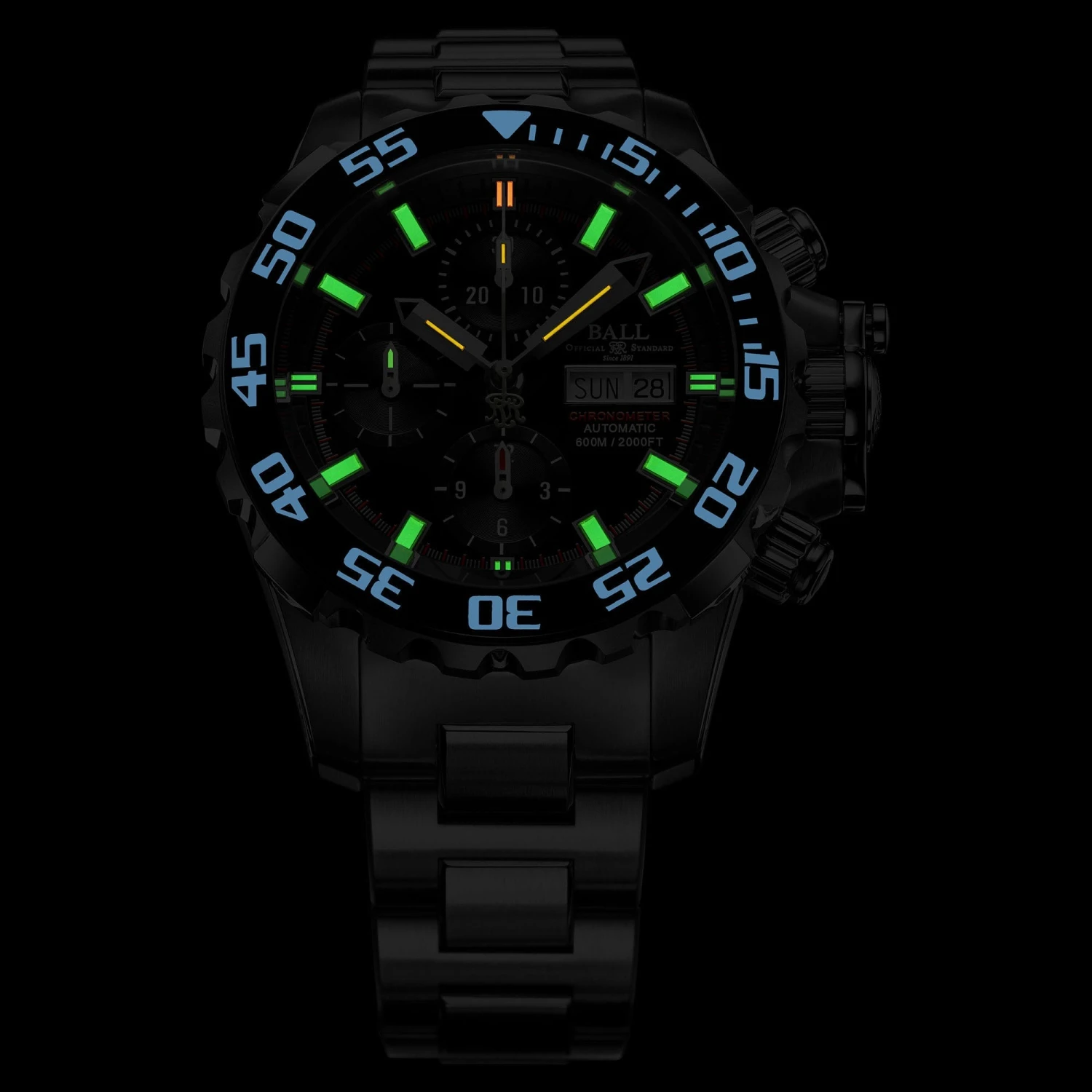 - 21 micro gas tubes on hour, minute, second hands, dial and pushers for night reading capability