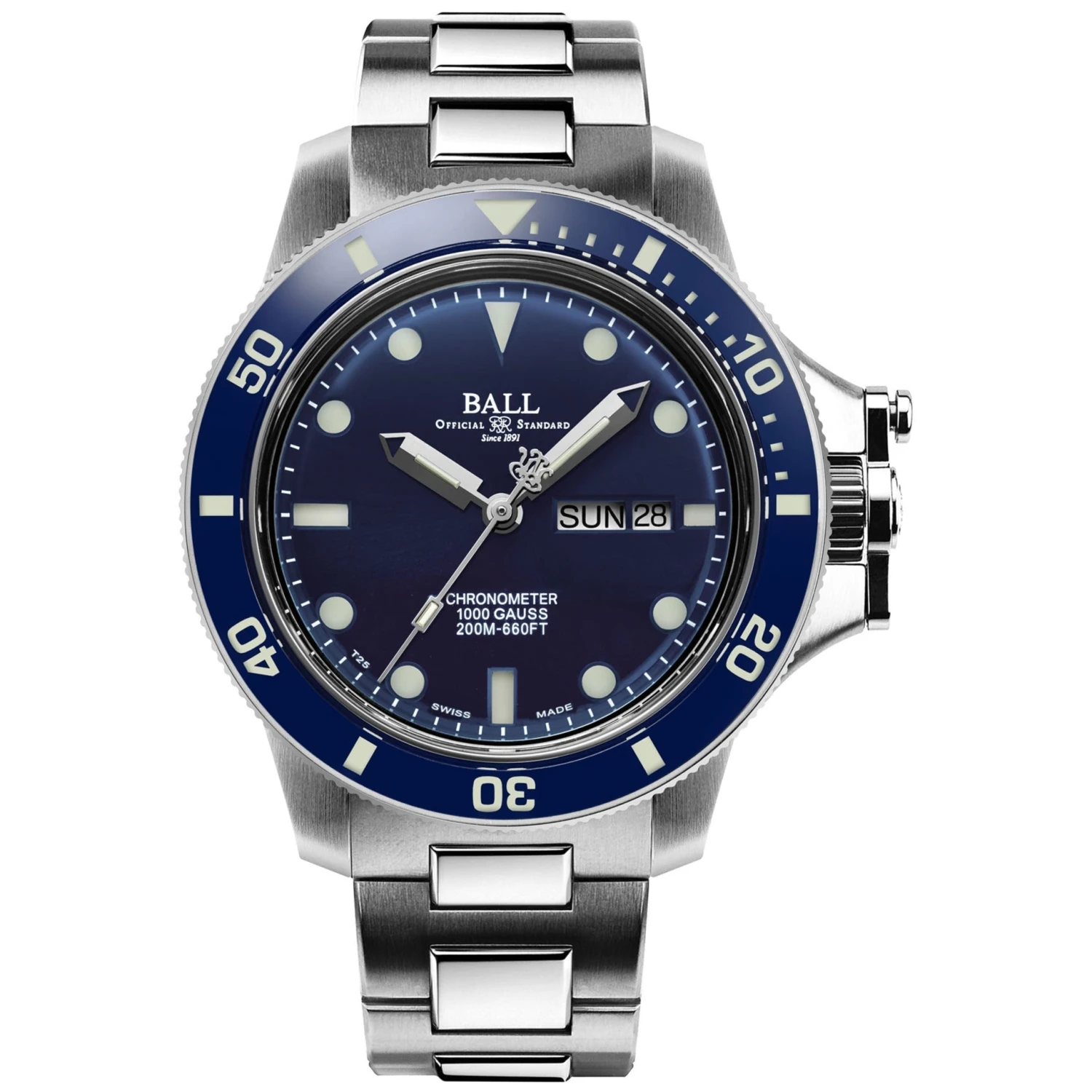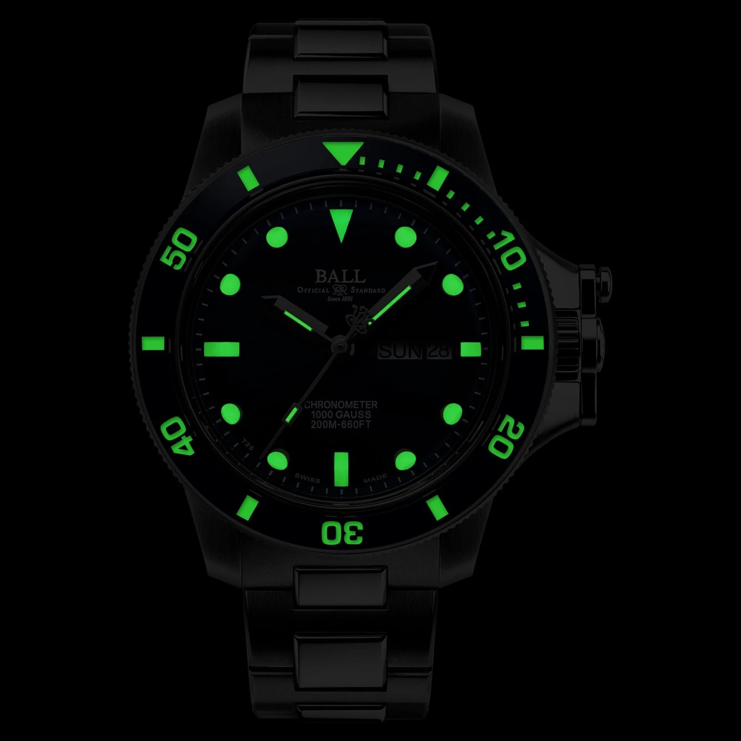 - Unidirectional rotating curved sapphire bezel with micro gas tubes for night reading capability