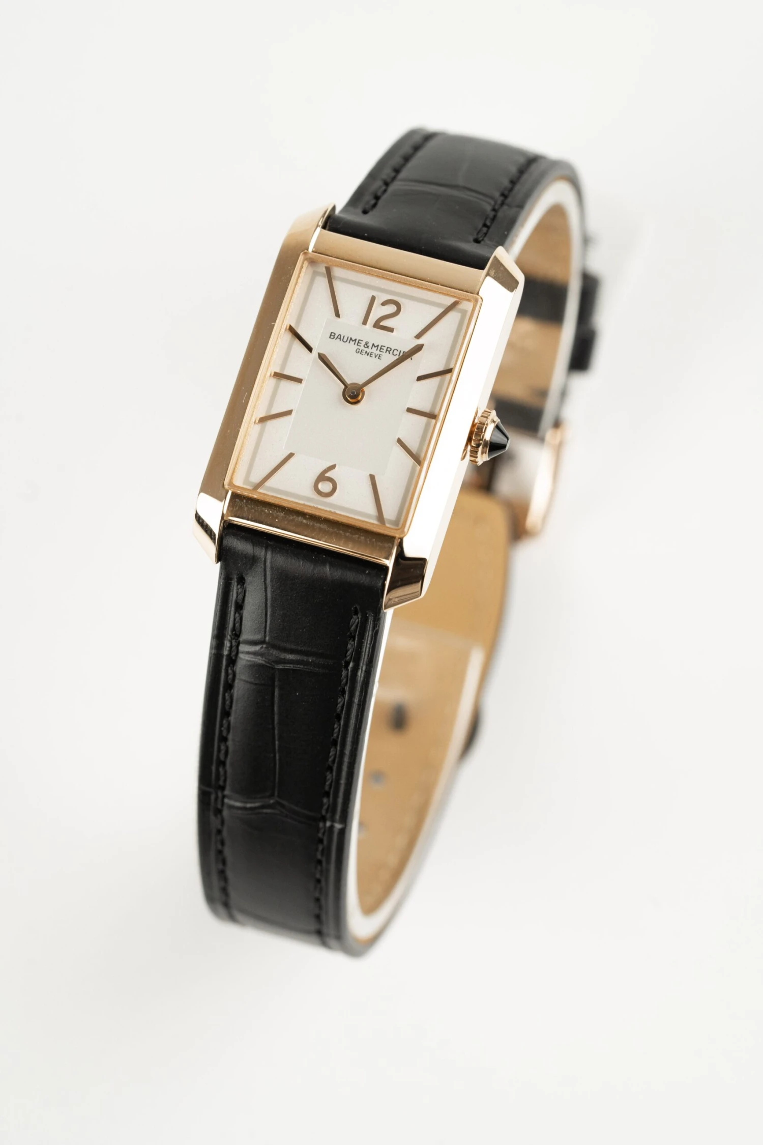 Experience the allure of this exquisite watch, powered by a quartz movement that symbolizes precision and reliability. Encased in polished 18K pink gold and titanium, its opaline dial radiates timeless elegance, adorned with gilded Arabic numerals and graceful sword-shaped hands that meticulously mark each moment. Paired with an interchangeable black alligator strap, this timepiece effortlessly transitions from day to night, offering unparalleled versatility and style. Each glance at this watch invites you to embrace every moment with confidence and poise, promising a journey filled with elegance and sophistication.