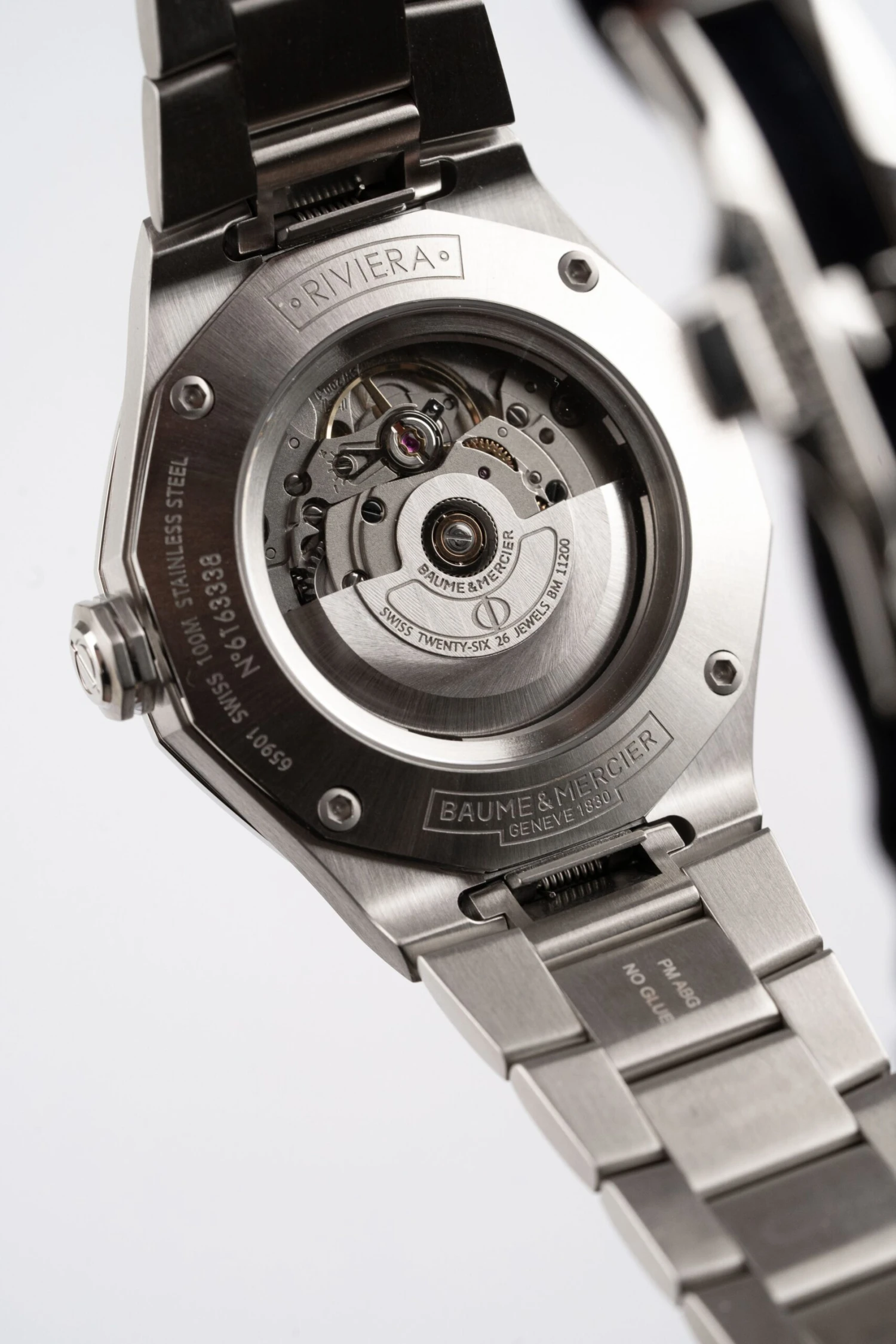 Sporty, dressy, casual, this Riviera is a multifaceted timepiece that will please many personalities. Equipped by a “swiss-made” automatic movement, it features a dodecagonal case, a black dial adorned with a unique pattern, and a metal bracelet. The perfect choice for people looking for versatility. Created in 1973, the Riviera watch returns this year to revive the spirit of a distinguished watchmaking era. Here it is in 2021, still authentic: a poised-sized steel case, a dodecagonal bezel equipped with four screws, a “Swiss Made” self-winding movement, and a built-in interchangeable steel bracelet. The original design is still there, but so is the desire to adapt to our times.