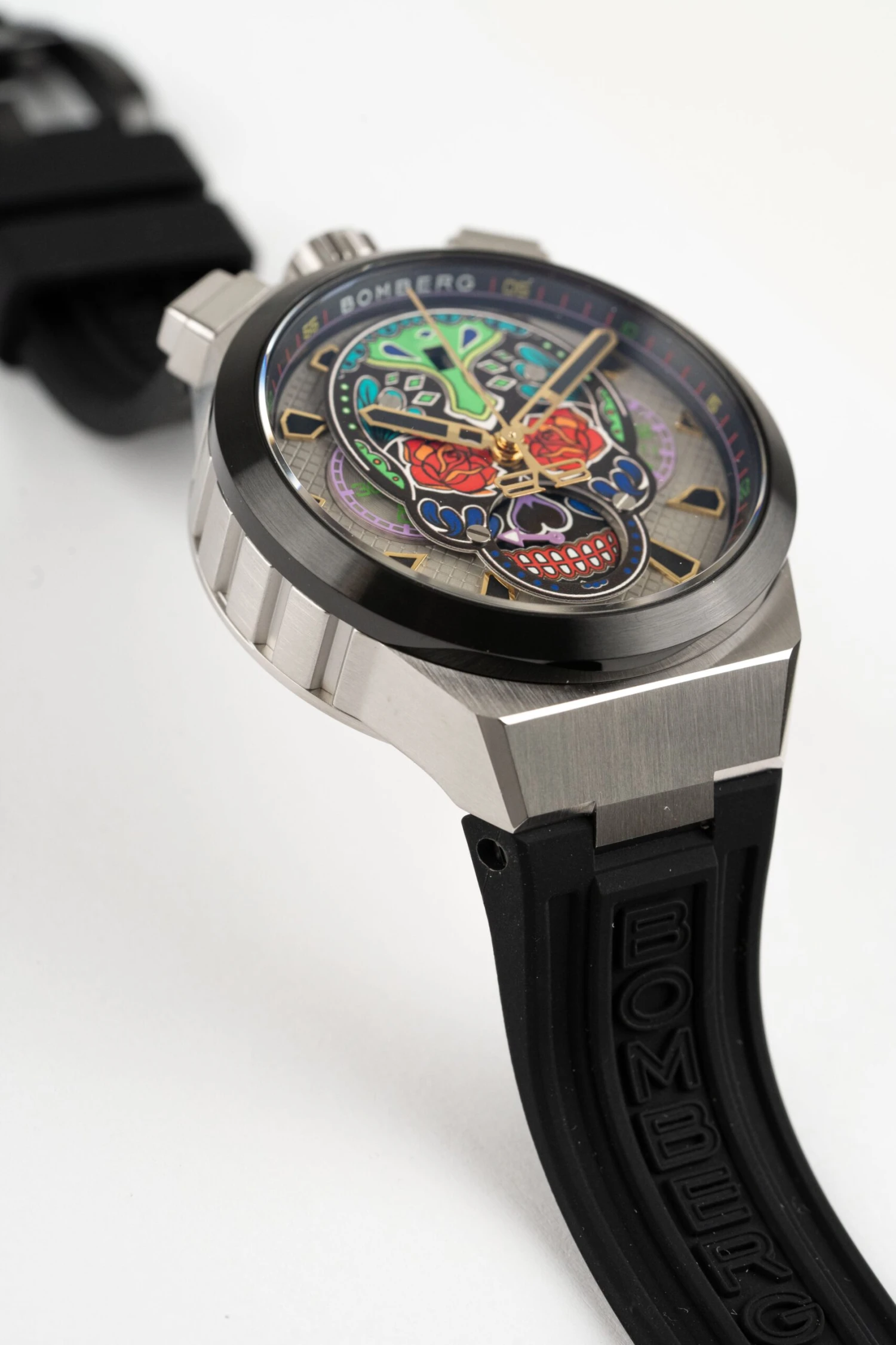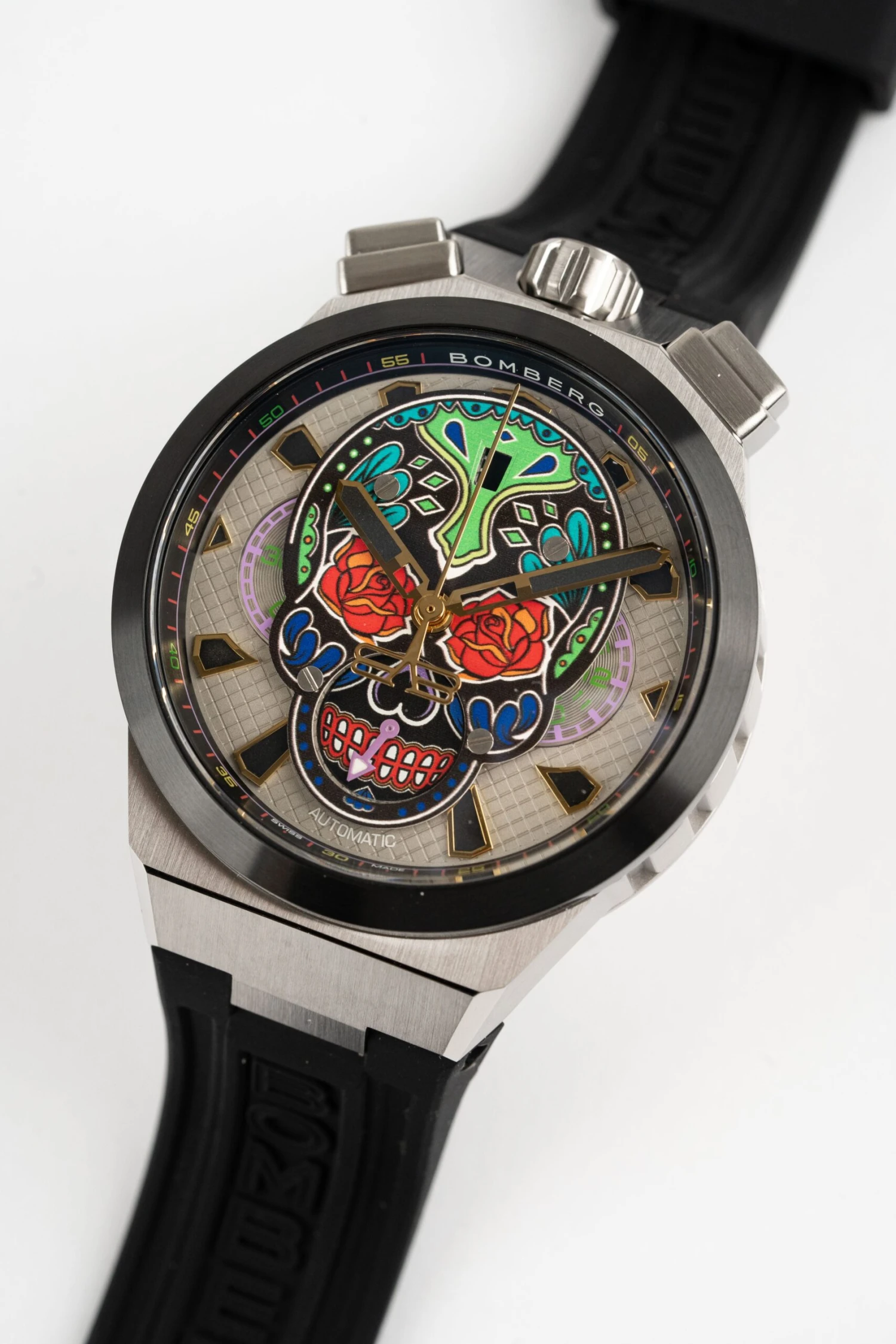 Step into bold style with the Bomberg Men’s Bolt-68 Neo Calaveras Multicolour Watch, a striking addition to Bomberg’s iconic collection. The robust 44 mm black PVD-coated stainless steel case combines durability with contemporary flair.