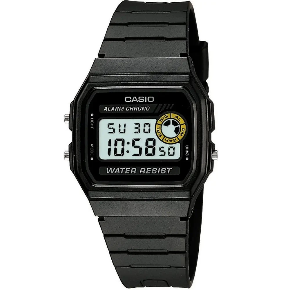 Embrace functionality and style with the Casio F-94WA-8DG Unisex Black Digital Watch. Designed for everyday convenience, this lightweight timepiece features a compact 38.2 × 33.2 × 8.5 mm resin case, paired with a durable black resin band for a comfortable fit.