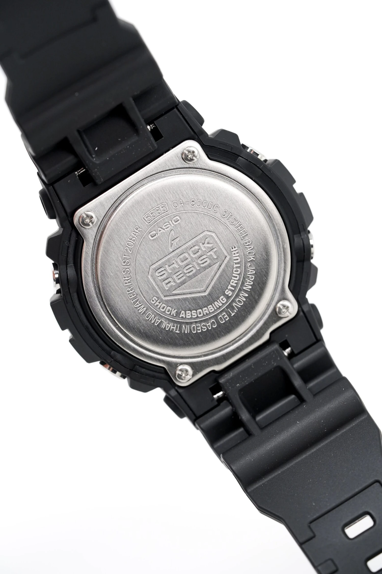 Japanese Quartz Movement. World Time, Stopwatch, Timer, Alarm, and Automatic Calendar Functions.54.1mm x 48.6mm x 15.5mm Black Resin and Stainless Steel Round Case. Easy to Press Button Arrangement on Characteristic Shock-Proof Case.Silver and Neon Digital Camo Analog-Digital Combination Dial with Black and Neon Arrow Hands and Neon Baton Markers. Digital Display at 6 O’Clock. Scratch Resistant Mineral Crystal.30mm Black Resin Strap with Pin BuckleWater Resistant to 200 Metres 20ATM