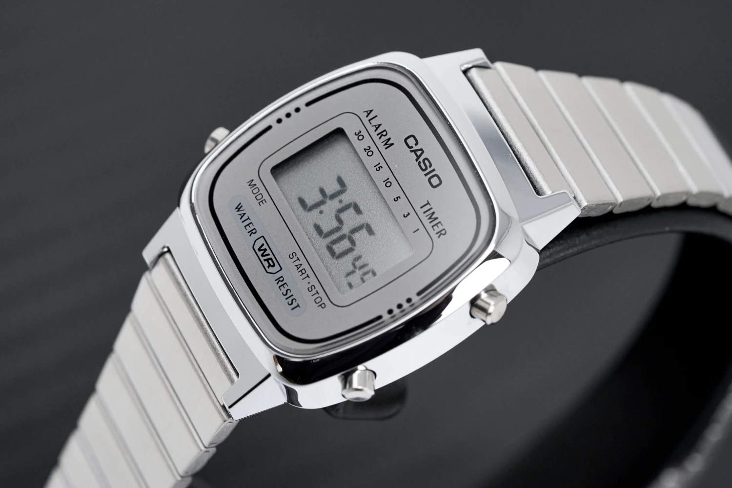 Casio Ladies Watch Digital Vintage Classic Flat Link Silver LA670WA-7DF