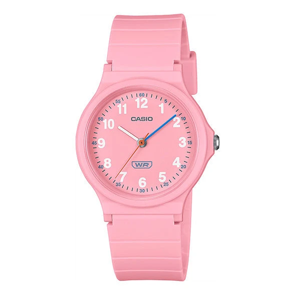 Brighten up your everyday look with the Casio Pop Ladies’ Pink Watch LQ-24B-4BDF. This stylish and lightweight analogue watch features a 31.5mm pink resin case and a matching bio-based resin strap, offering a fun and eco-friendly design. The clear dial layout, complete with colour-matched hour and minute hands, ensures easy readability, making this an ideal first watch or a charming everyday accessory.