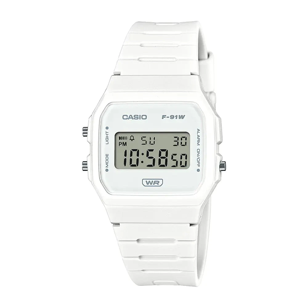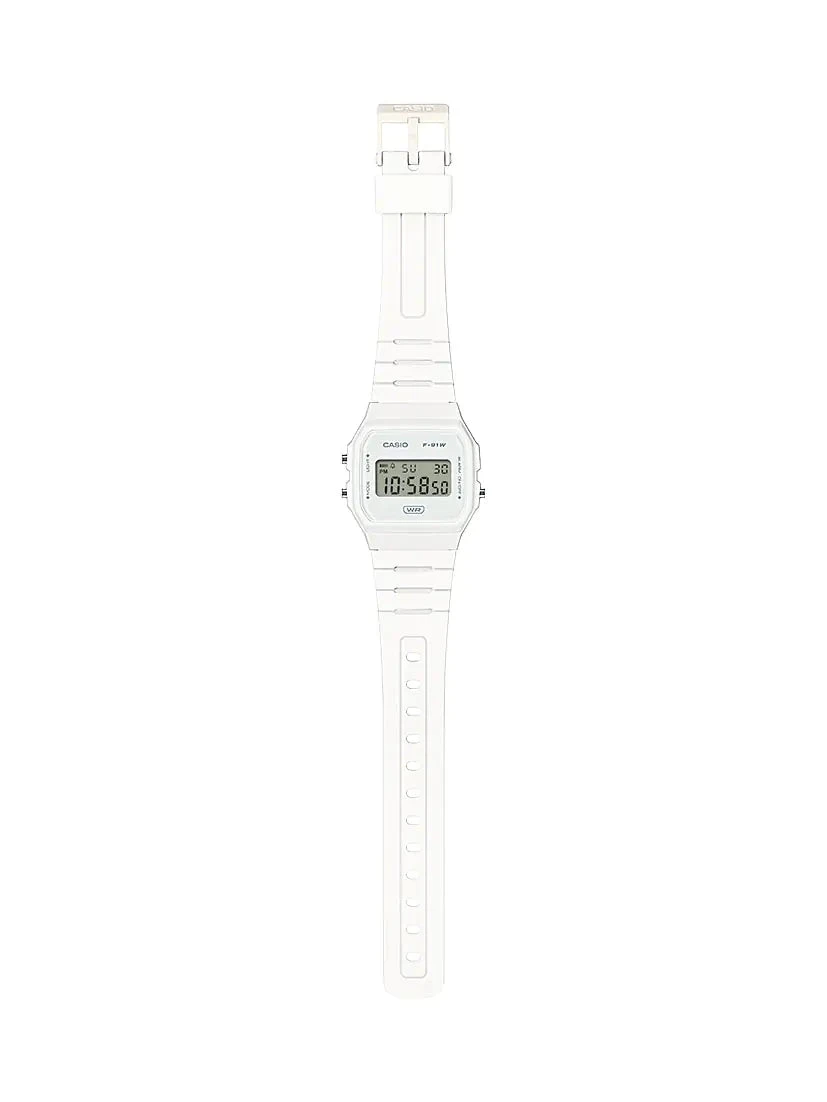 The Casio POP F-91 Series Unisex White Digital Watch is a sleek and lightweight timepiece, ideal for those who appreciate both form and function. The 38.2 × 35.2 × 8.5 mm case and bezel are crafted from durable resin, making this watch highly resistant to everyday wear and tear. It features a bio-based resin strap that aligns with Casio’s commitment to reducing environmental impact, providing both comfort and sustainability.