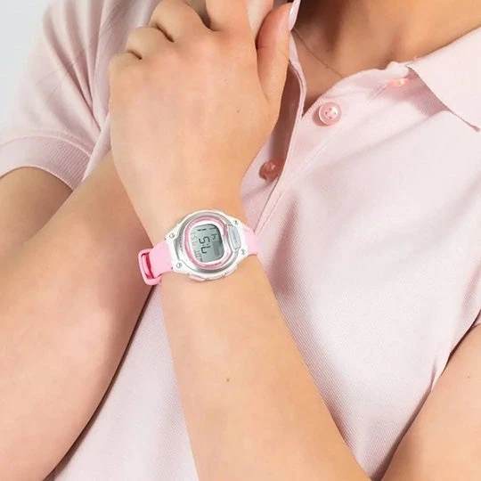 Stay stylish and active with the Casio Sports Ladies’ Pink Digital Watch LW-203-4AVDF, a lightweight and feature-packed timepiece designed for everyday wear. Featuring a clear LCD display and a petite resin case, this watch offers a perfect balance of functionality and fashion. Its soft pink resin strap is curved for an easy, comfortable fit, making it ideal for women with active lifestyles.