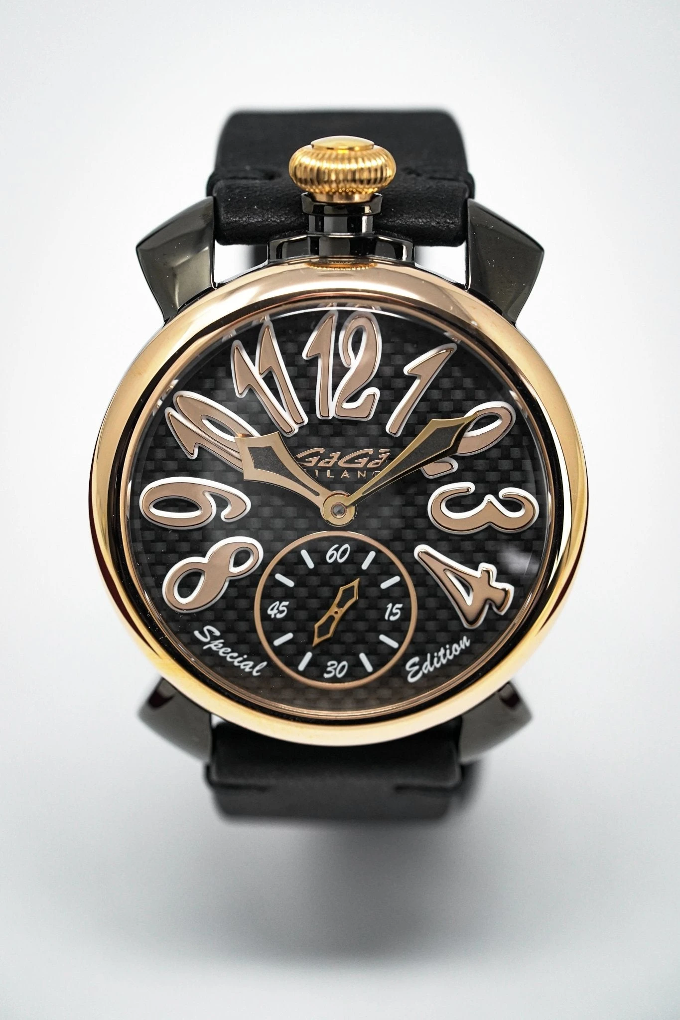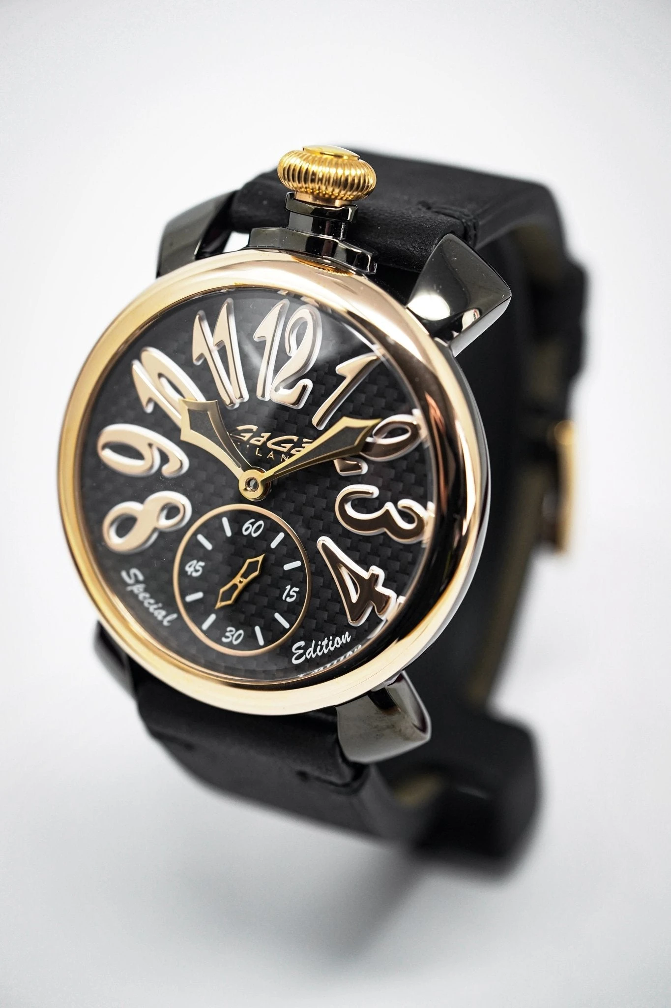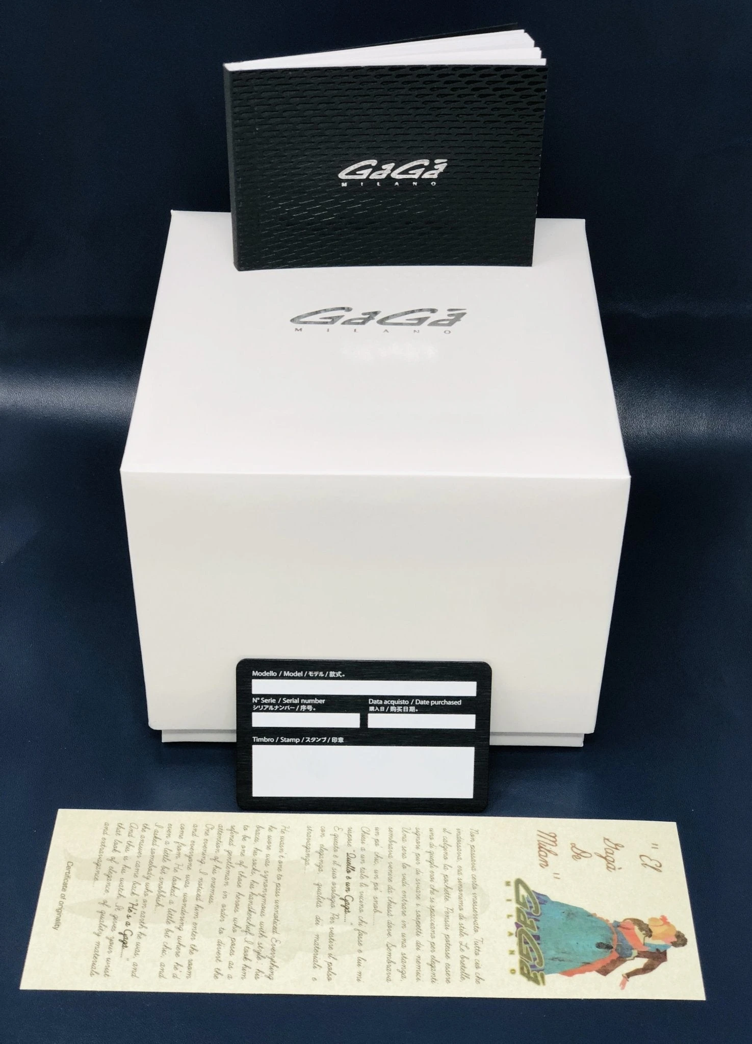 Swiss Made Mechanical, Hand Wound, GaGà 6497 Movement with a power reserve of 36 Hours – 21,600 bph – 21 Jewels – Screw Down Crown at 12 O’Clock – Open Sapphire Crystal Case Back which shows off the balance spring, the Manual Wind Mechanism and The GaGà Milano craftsmanship