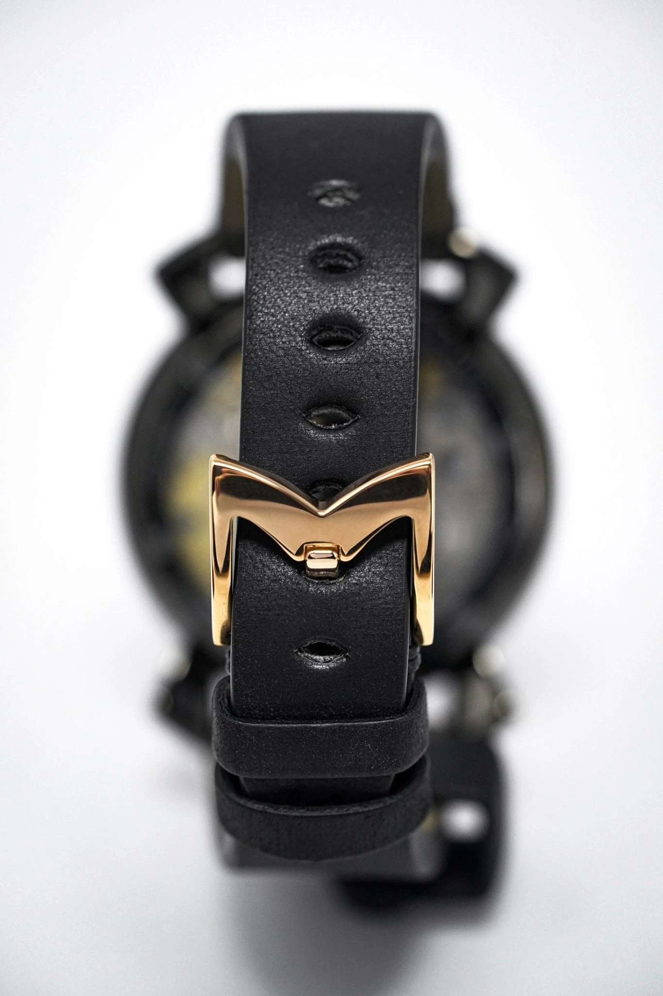 48 x 16mm Black PVD Stainless Steel Case – Rose Gold PVD Stainless Steel Bezel – Domed Anti-Reflective Sapphire Crystal