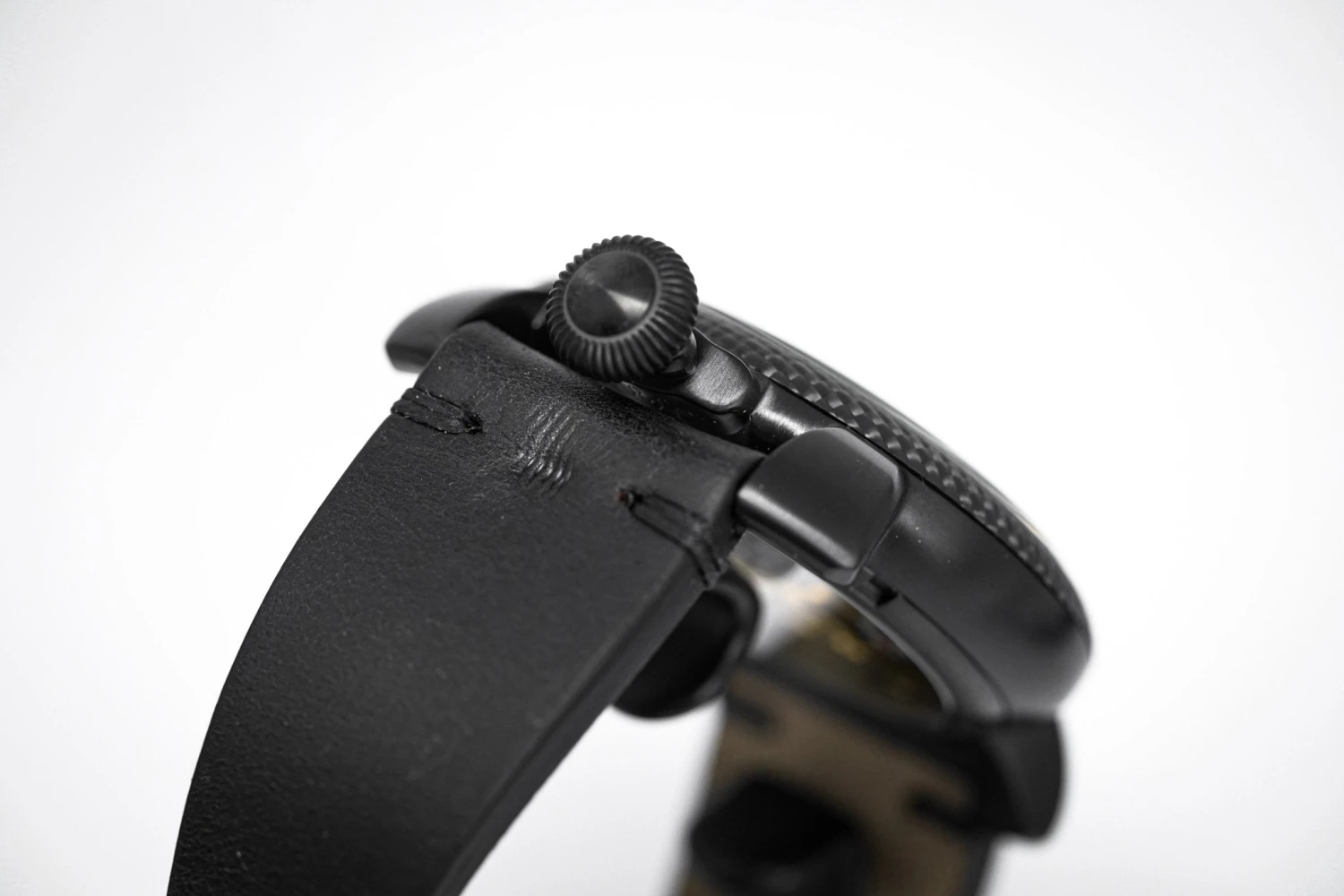 Carbon Dial with Gold Plated Steel Markers and Hands.