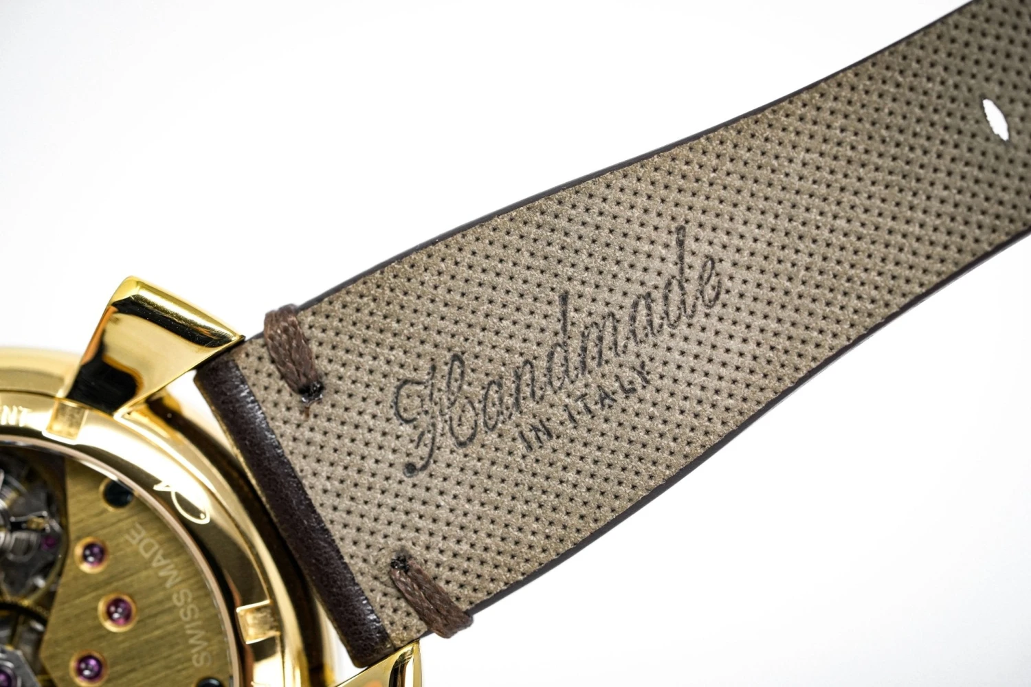 24mm x 19cm Handmade Italian Brown Leather Strap and a Yellow Gold PVD PVD Stainless Steel Buckle