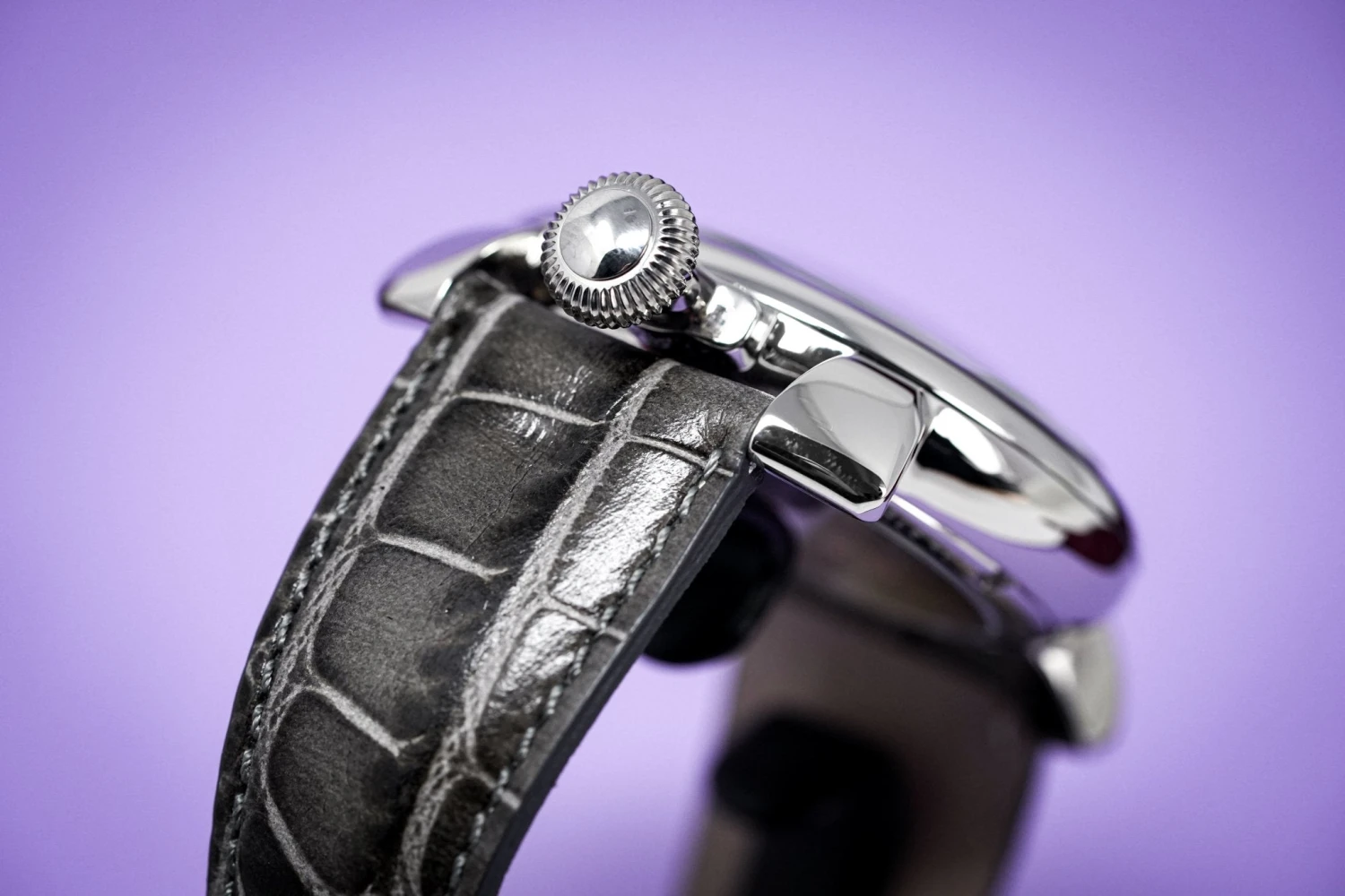 24mm x 19cm Handmade Italian Grey Croco Imitation Leather Strap and a Stainless Steel Buckle