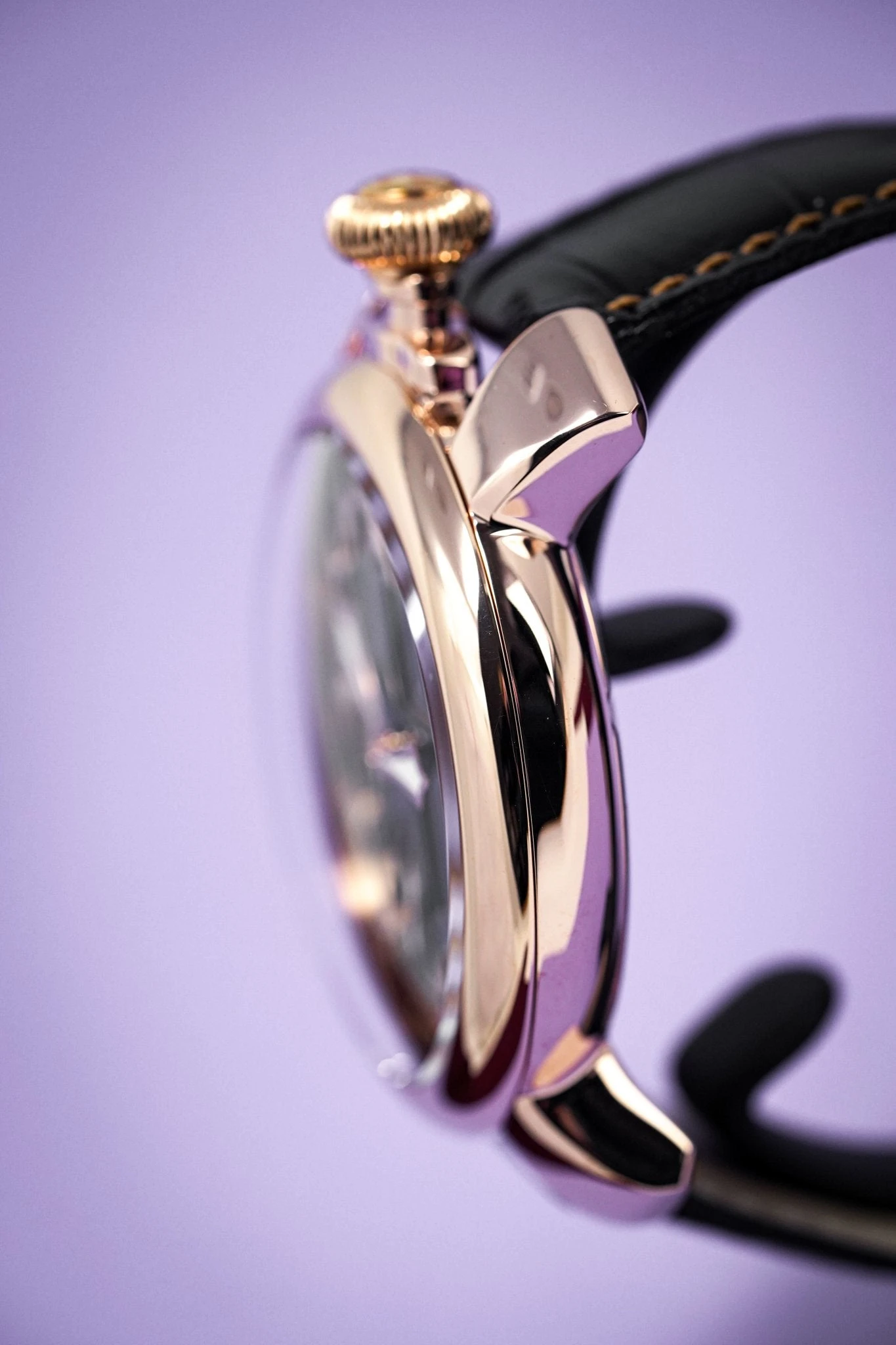 48 x 16mm Rose Gold PVD 316L Stainless Steel Case – Domed Anti-Reflective Sapphire Crystal