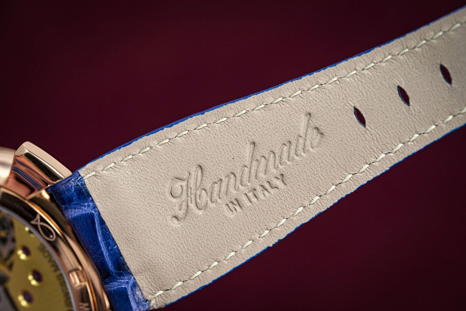 24mm x 19cm Handmade Italian Blue Croco Imitation Leather Strap and a Rose Gold PVD Stainless Steel Buckle