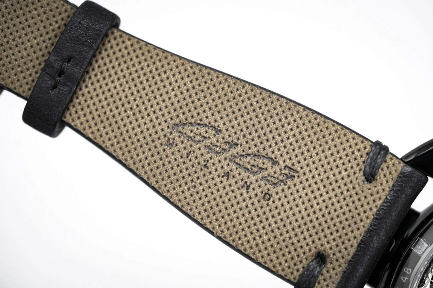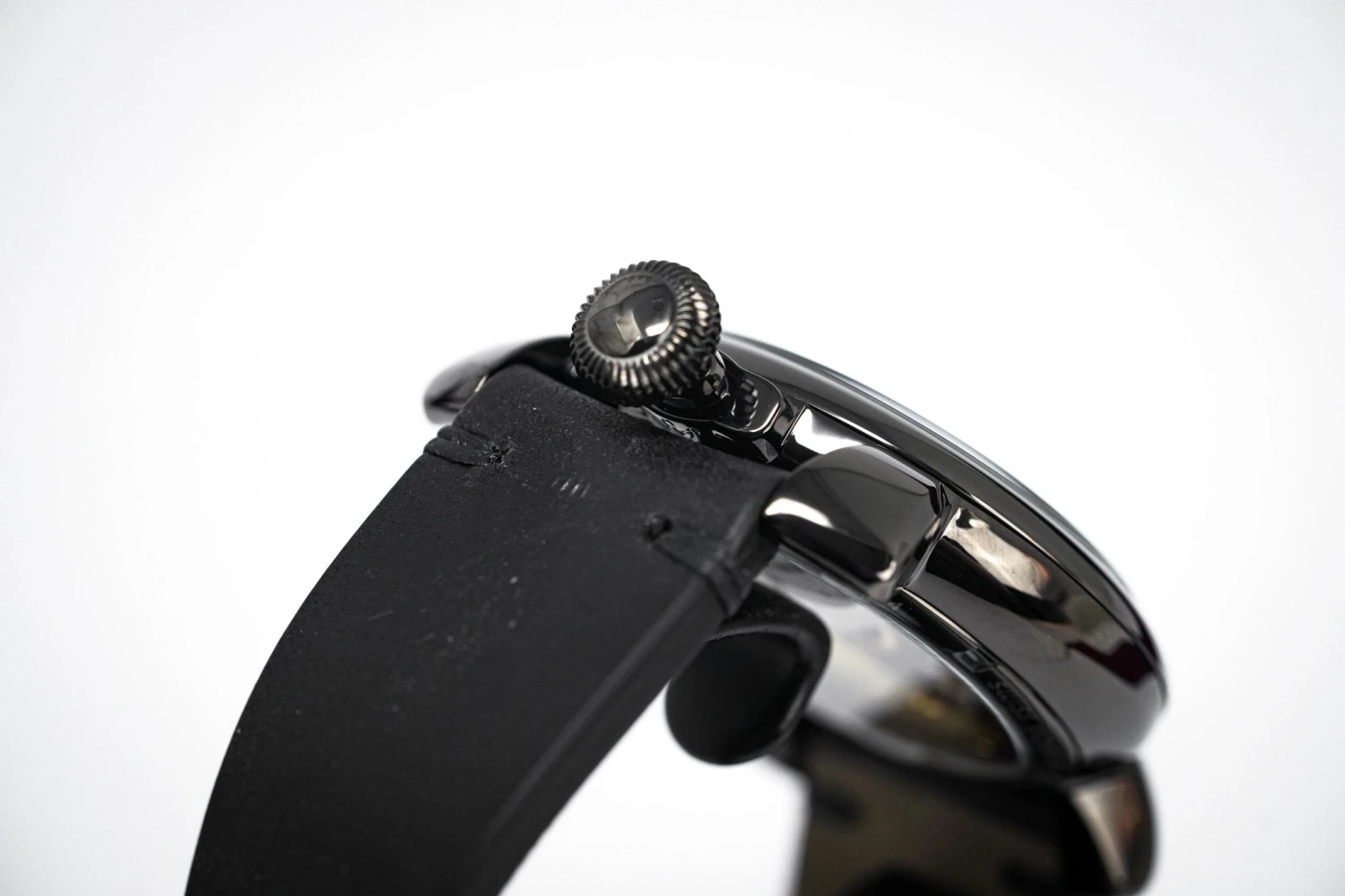 23mm x 19.5cm Black leather strap with Black PVD Deployment Buckle