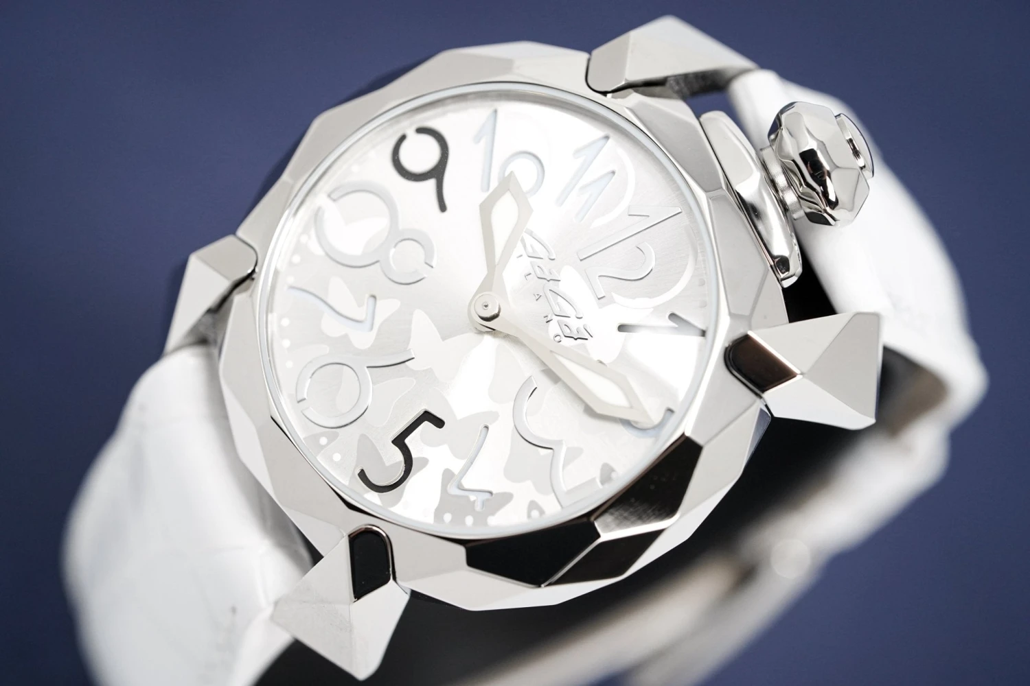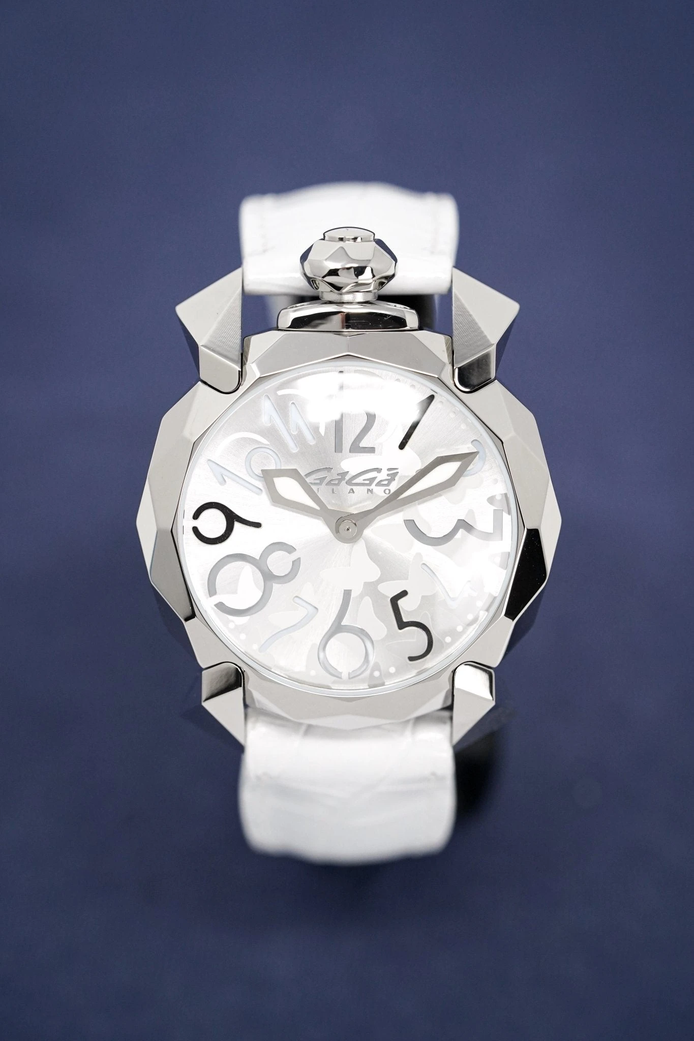 Strap Material: White alligator print Italian leather