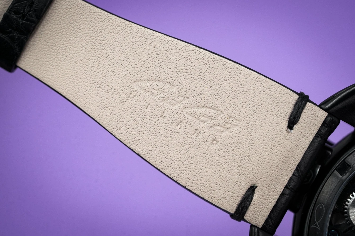 24mm x 16cm Handmade Italian Black Leather Strap and a Black PVD Stainless Steel Buckle
