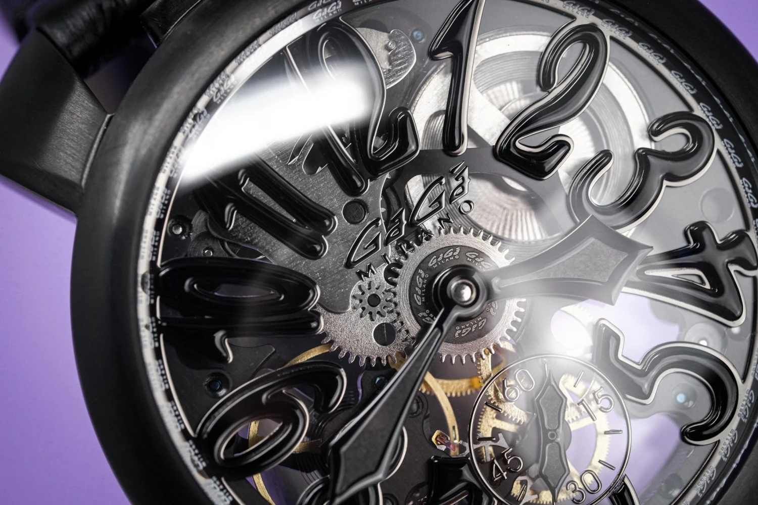 Swiss Made Mechanical, Hand Wound, GaGà 6497 Movement with a power reserve of 36 Hours – 21,600 bph – 21 Jewels – Screw Down Crown at 12 O’Clock – Open Sapphire Crystal Case Back which shows off the balance spring, the Manual Wind Mechanism and The GaGà Milano craftsmanship
