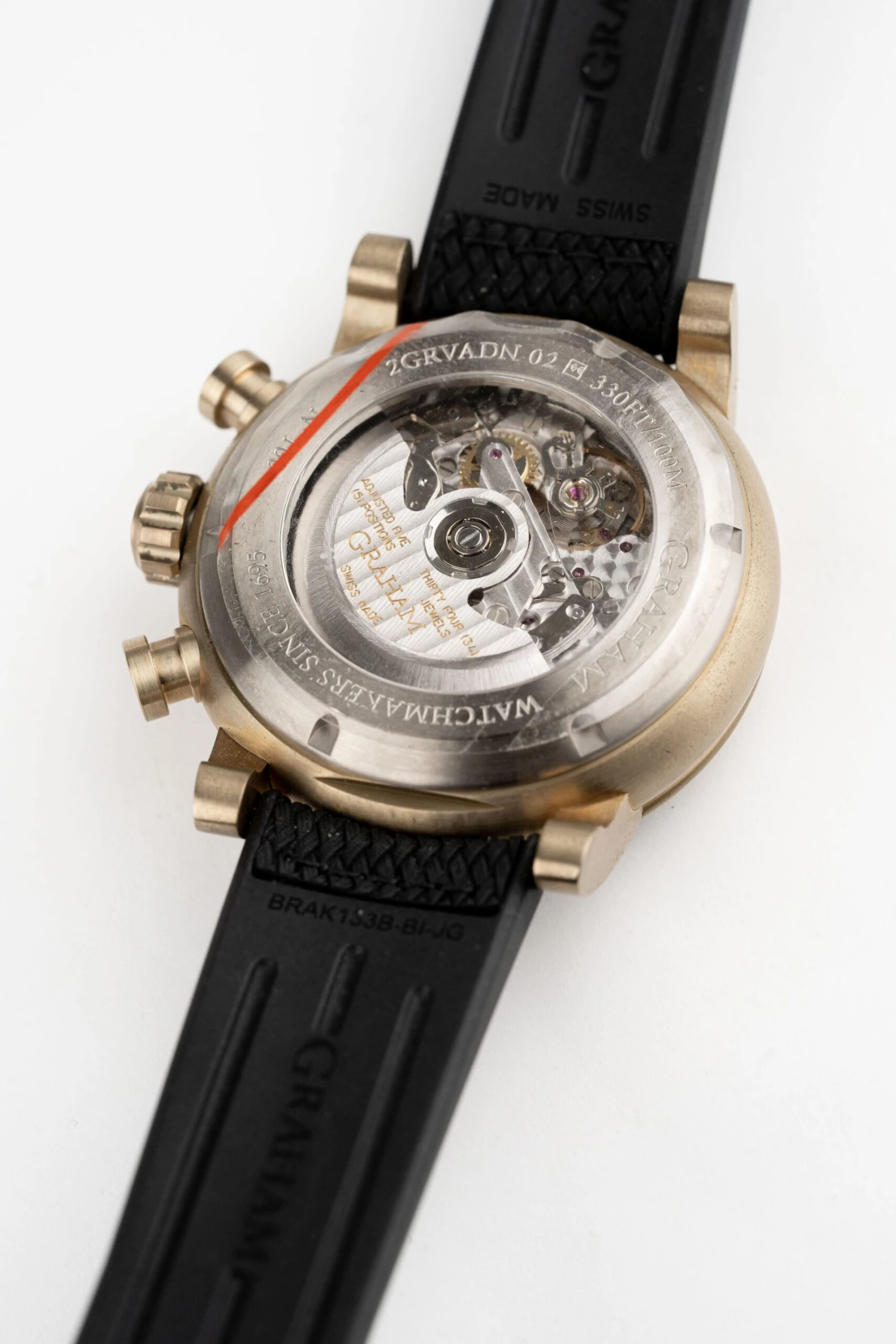 46 mm Bronze Case – Crown with 2 joints with “Clous de Paris” High Grip Pattern – Fixed Satin-brushed Bezel – Flat Sapphire Crystal with Two Portholes and Anti-reflective Coating