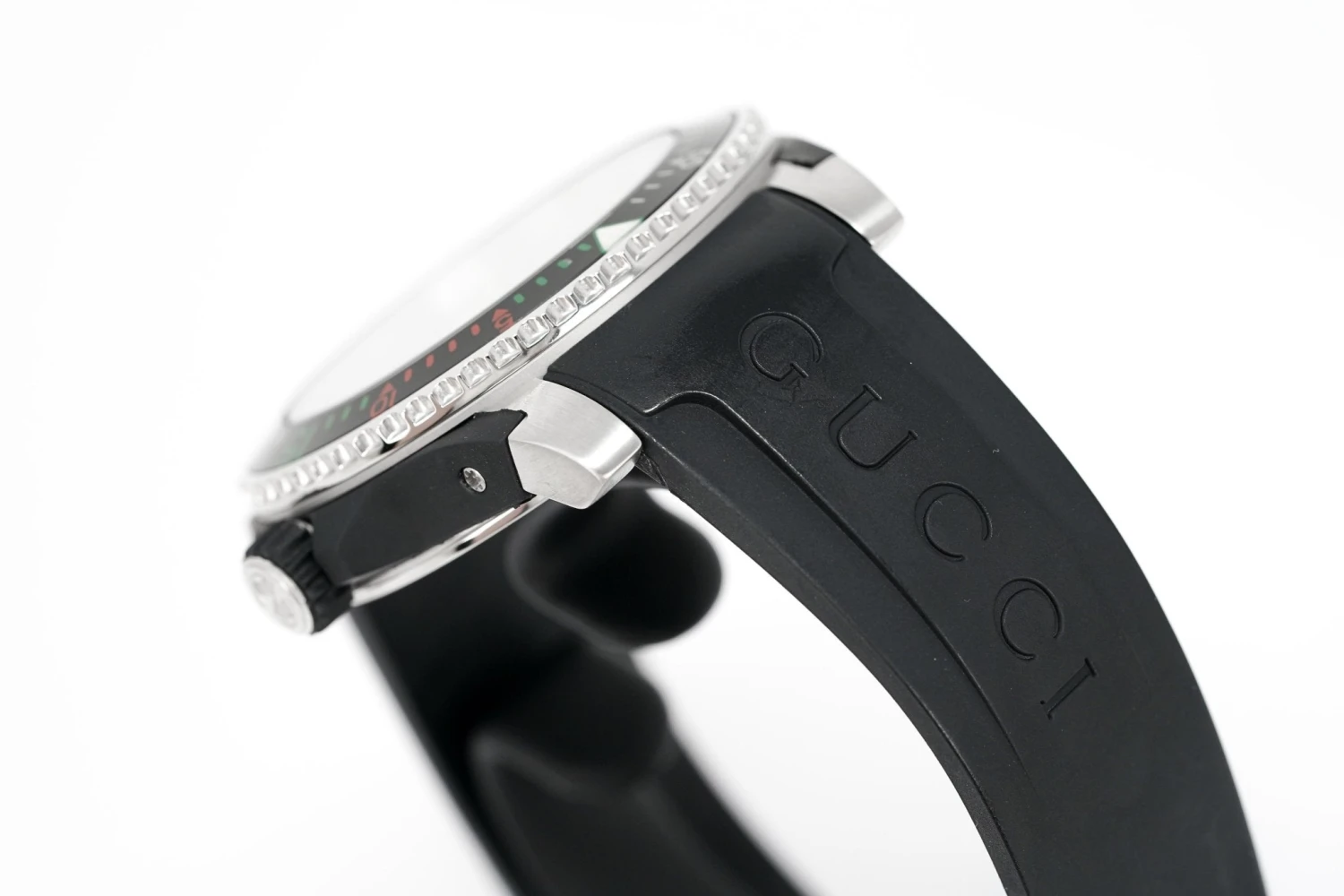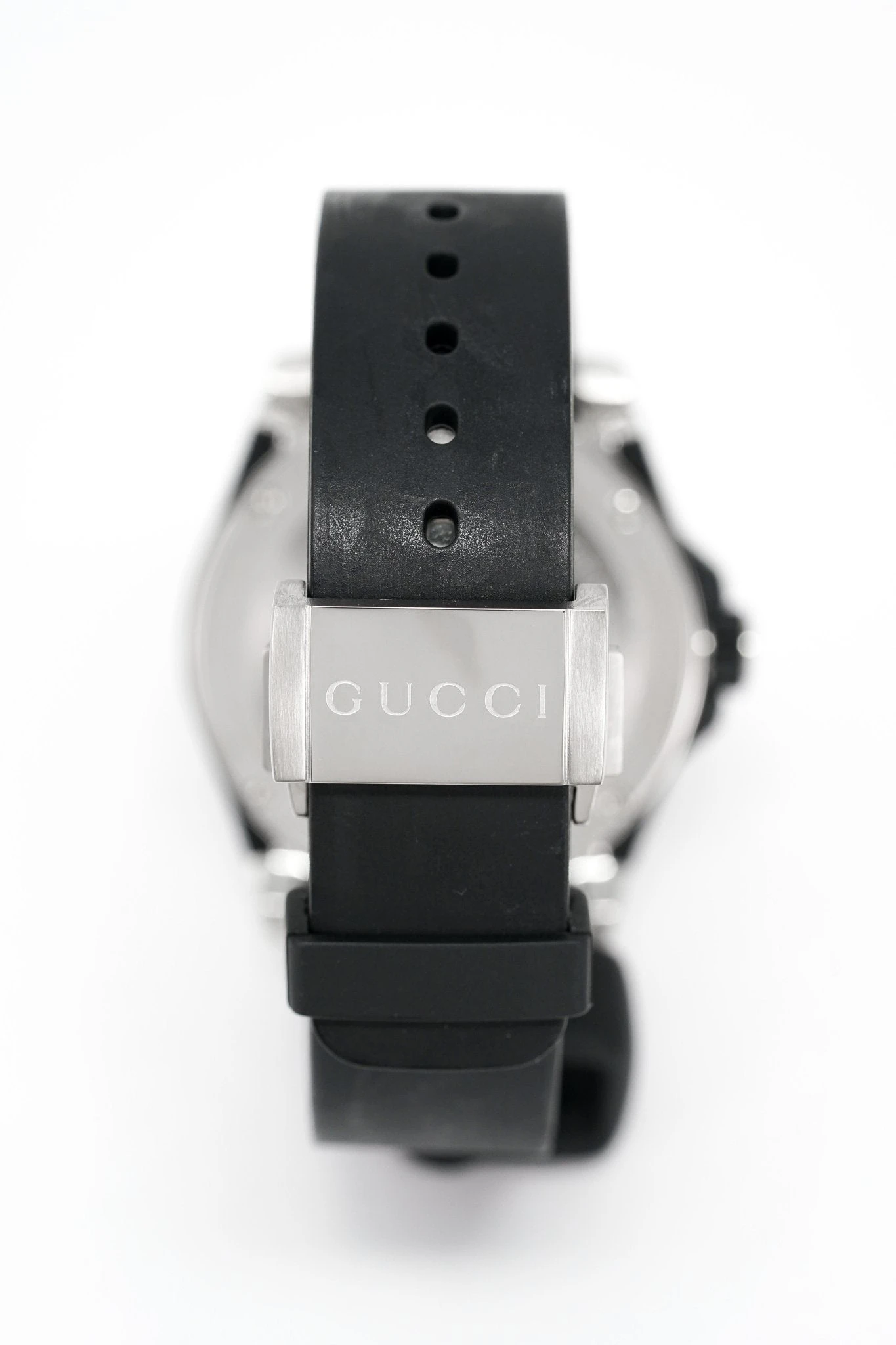 20mm Black Rubber Two-Piece Strap with Gucci Branded. Stainless Steel Push Deployment Clasp.