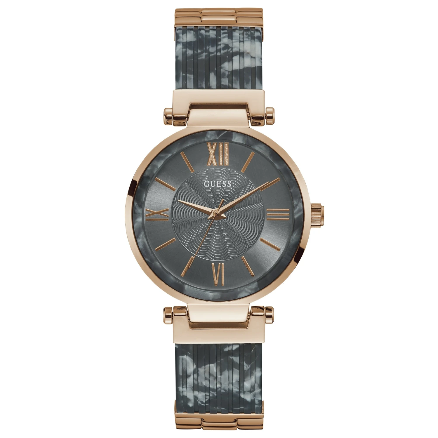 If you like to show off the latest in Fashion & Complements and Accessories are vital for your look, don’t miss out on the GUESS ladies watch with a polished rose gold case with the grey top ring, sunray grey dial with polished rose gold & grey bangle bracelet with adjustable G-Links.