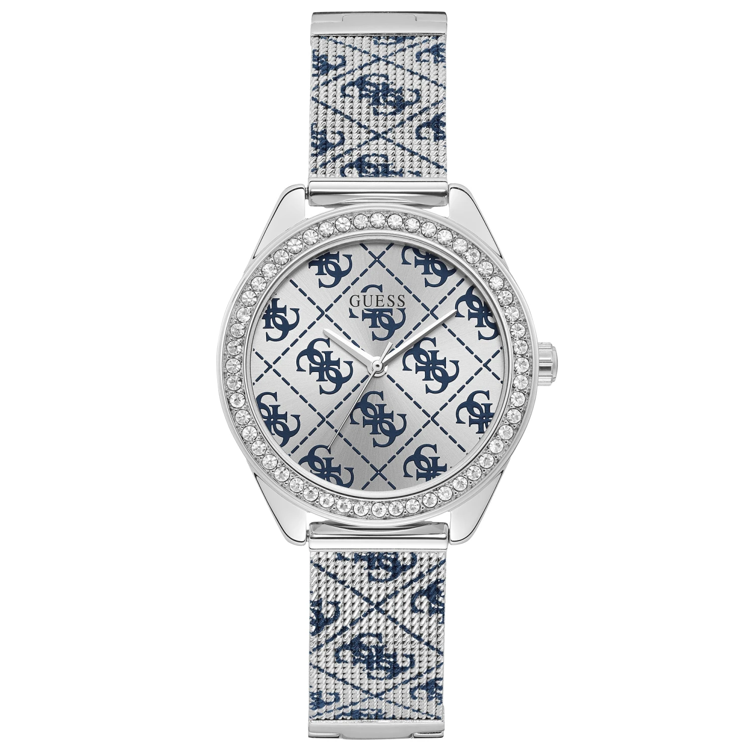 Ideal for stylish women, this analog watch from the Claudia collection by Guess is sure to impress you. Its stainless steel strap showcases an elegant silver hue that uplifts the look of the watch. Functional on a quartz movement, the silver round dial displays plain three hands, stylish embellishments and a crown for time adjustment. Besides, it is completed with a jewelry clasp to ensure a secure fit on the wrist.