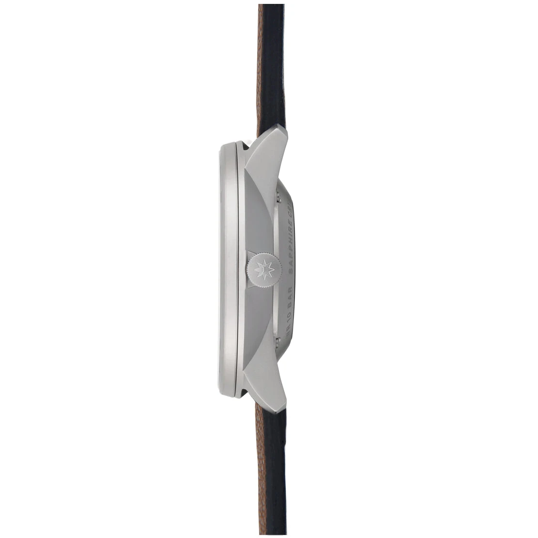 Even with a slightly larger diameter of 40 mm, the FORM A Titan is immediately the most striking model in the collection. With its sporty character and water resistance up to 10 bar, this watch is a hardy companion even in the toughest of activities. Casing and buckle made from skin-friendly titanium.