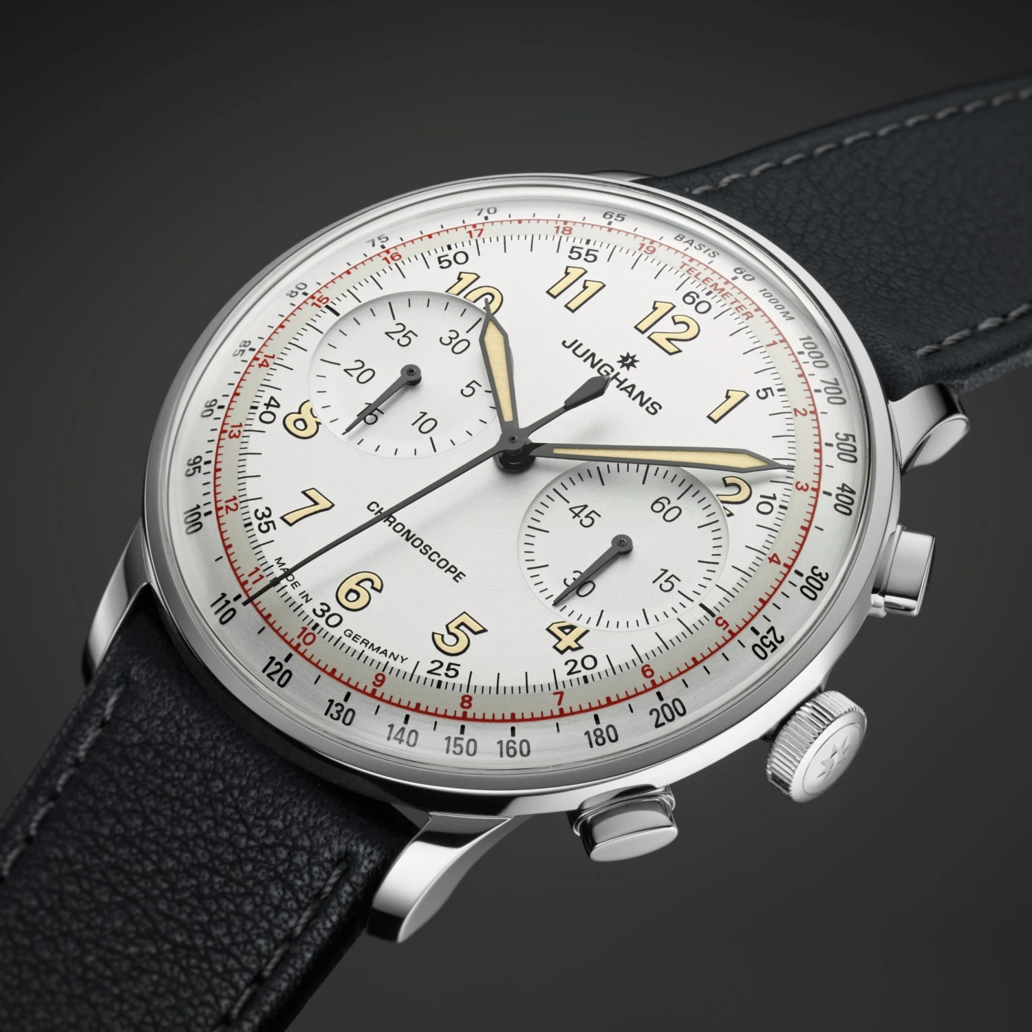 The telemeter and tachymeter display were first combined in a single Junghans chronograph in 1951. This legacy is now being perpetuated with the Meister Telemeter, a new retro release of the classic chronograph. An extremely beautiful watch, the Meister Telemeter is as elegant as it is technical and sporty, and just as relevant today as it was upon its original release nearly 70 years ago.
