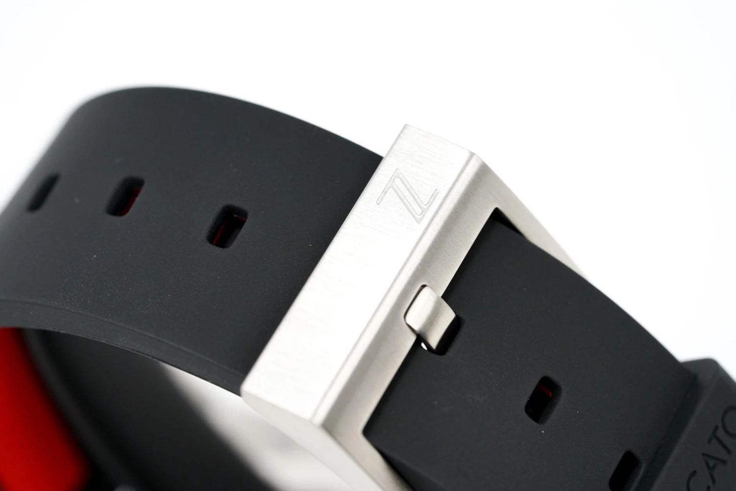 17cm x 24/22mm Two-Tone Black/Red Double Compression FKM Strap with 316L Stainless Steel Buckle – Strap Equipped with “Easy Spring Bar” for Easy Strap Interchange.