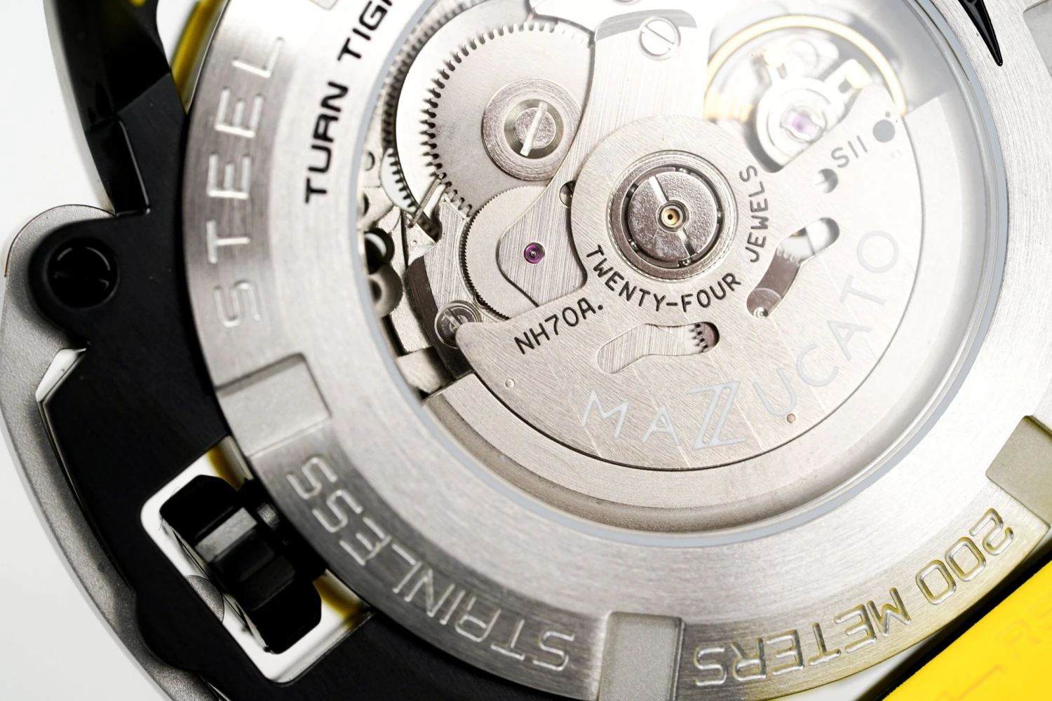 3 Hands Automatic Skeleton Movement Seiko NH70A (Made in Japan) 28.800 HZ – 24 Jewels – Power Reserve 41 Hours.