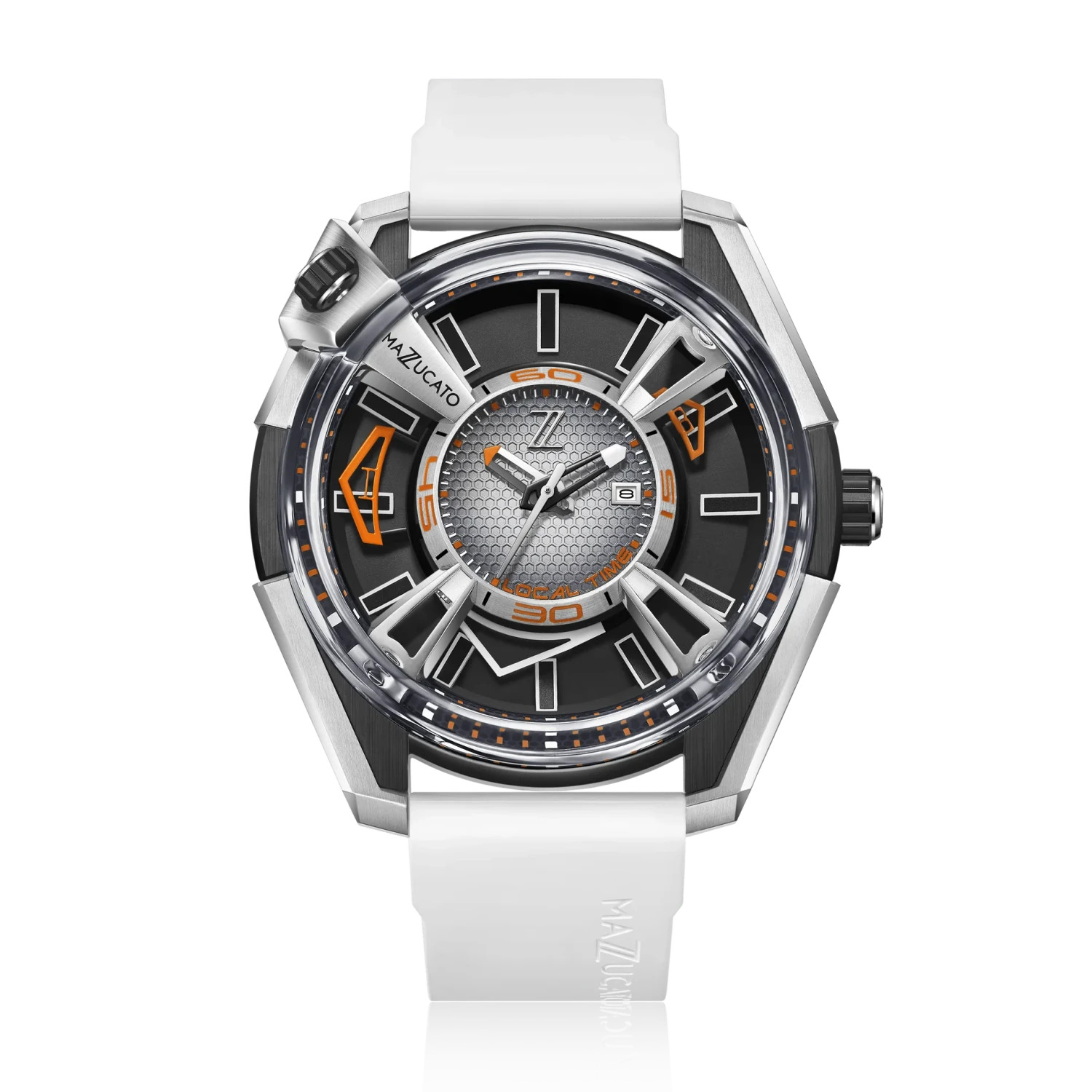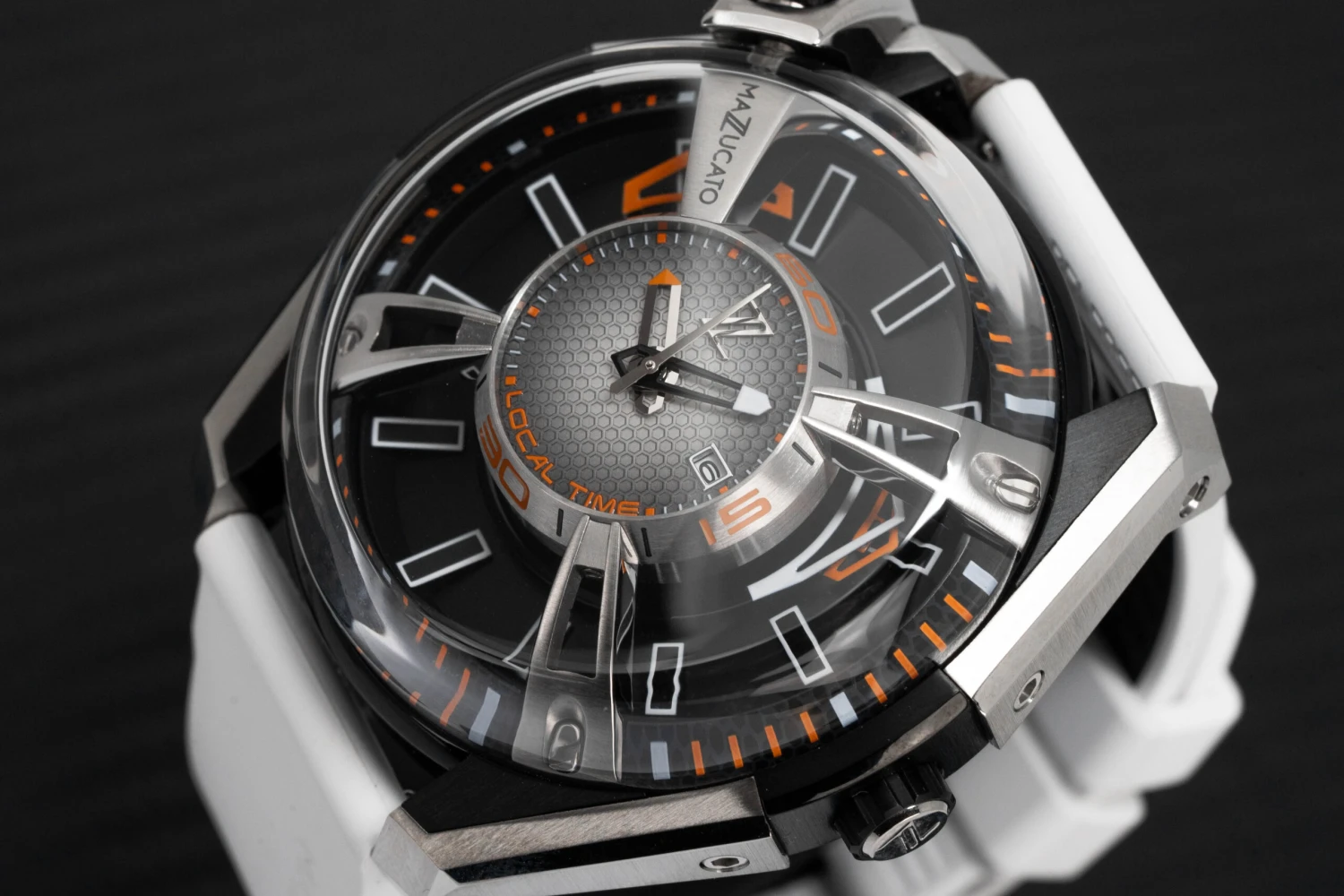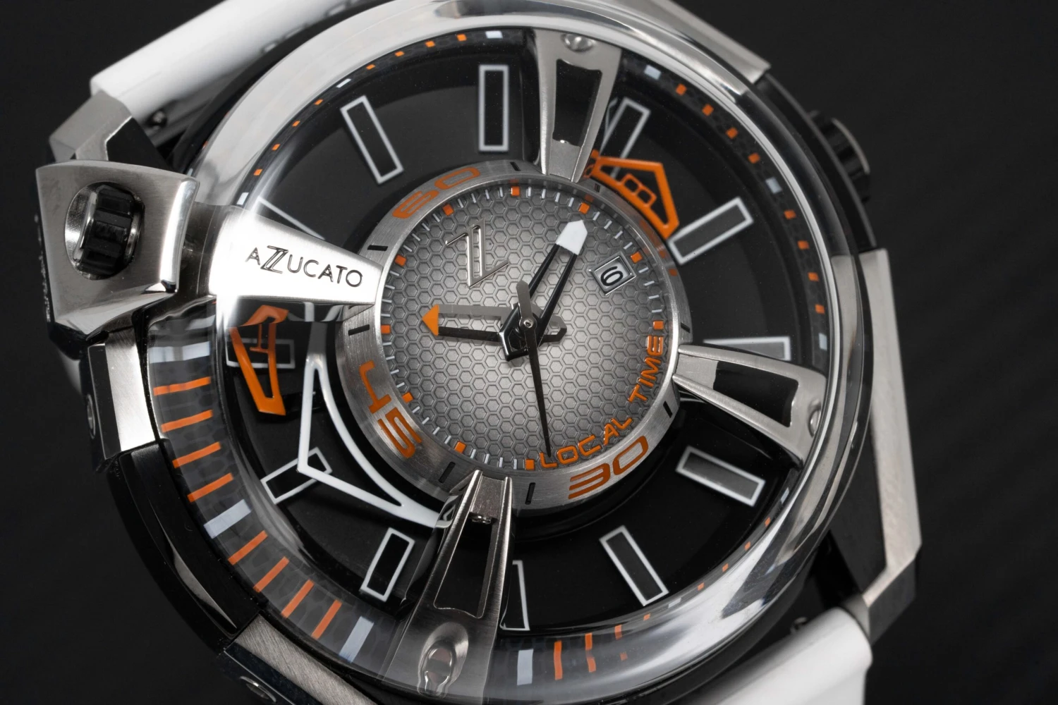 Grey/Black Honeycomb Dial – Black Luminous Hour Indexes – Hour, Minute and Second Hands – Date at 3 O’Clock.
