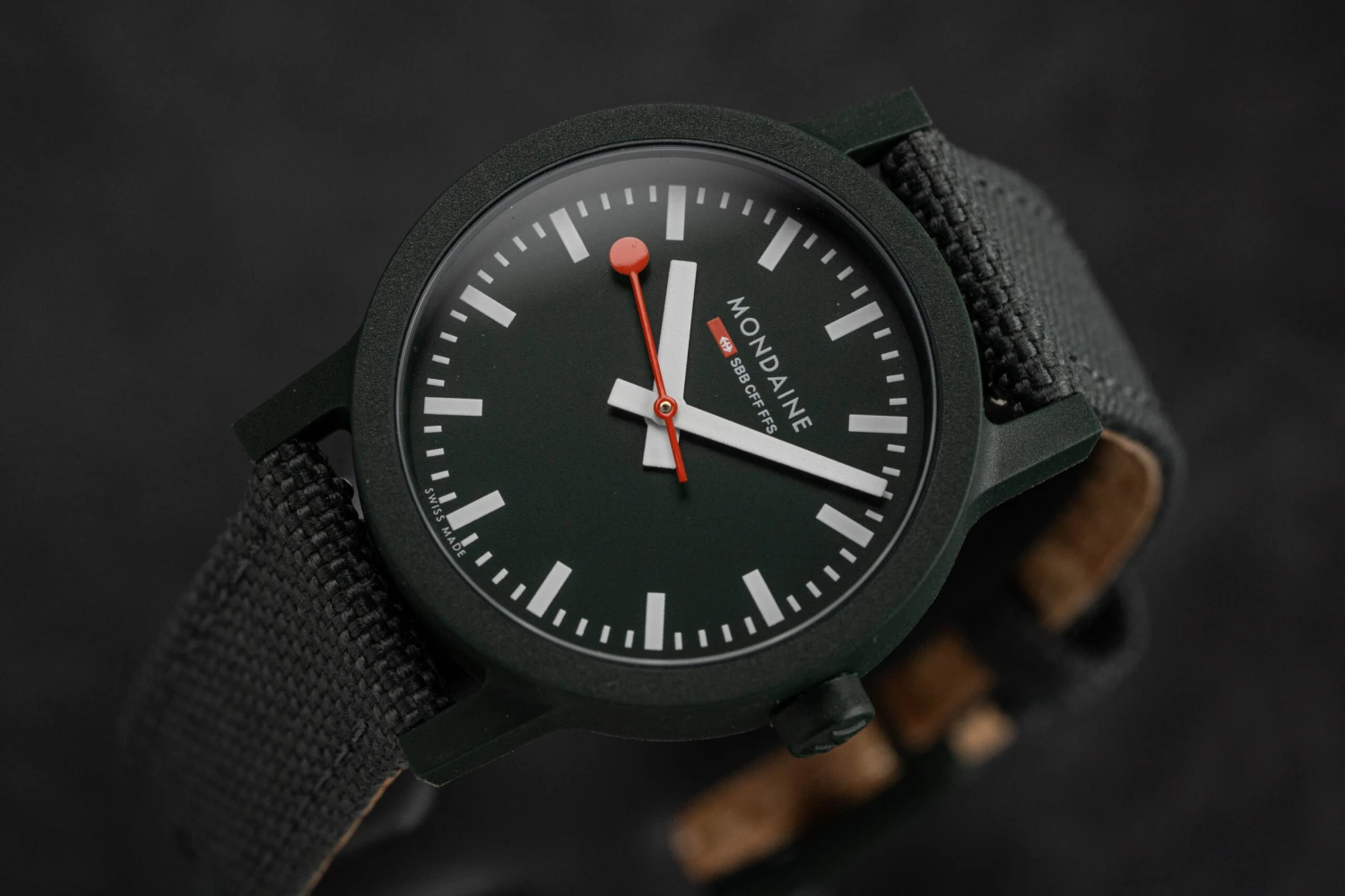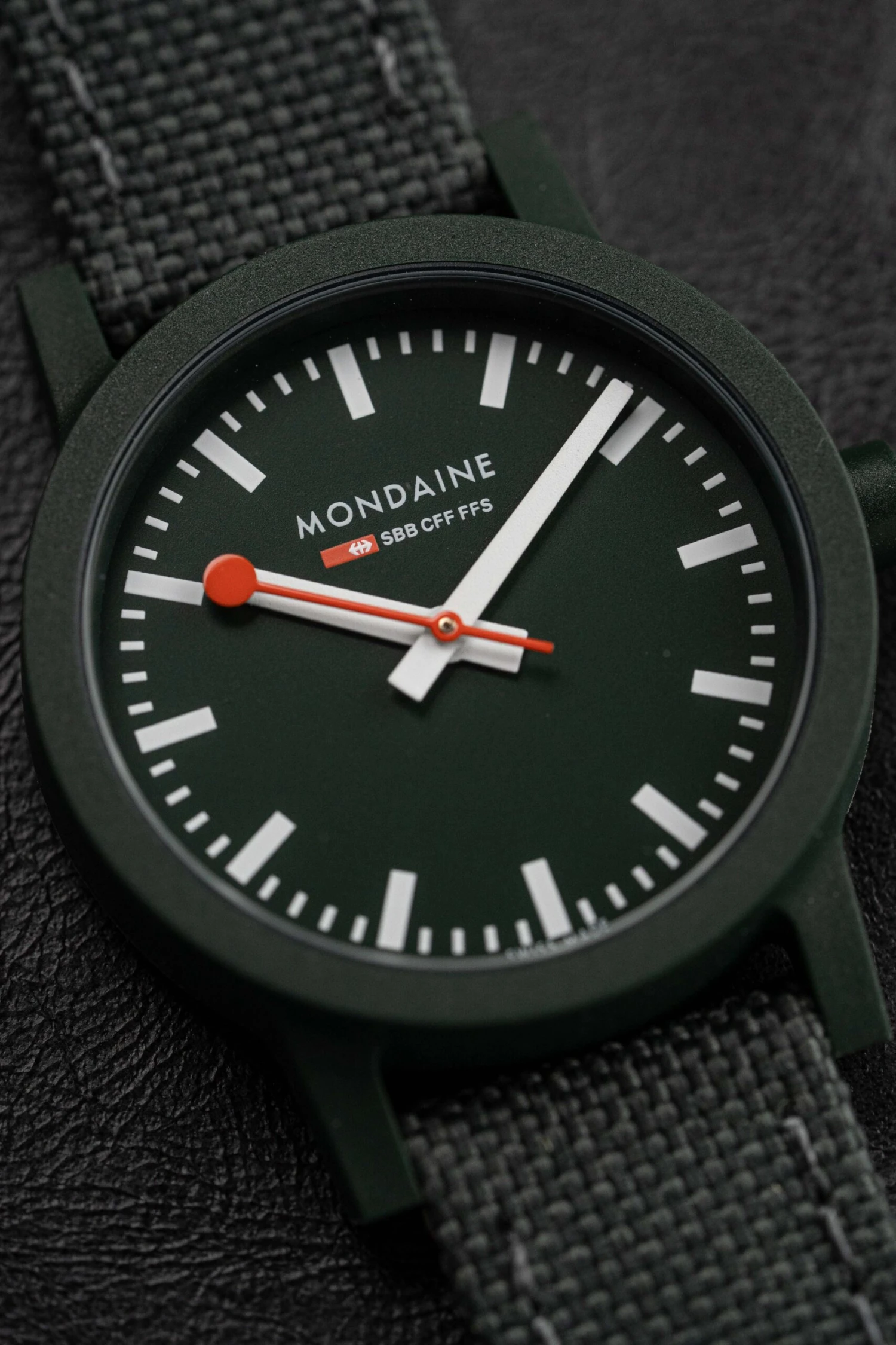 Green Dial – White Hour and Minute Hands – Red Second Hand – Hour Indexes.