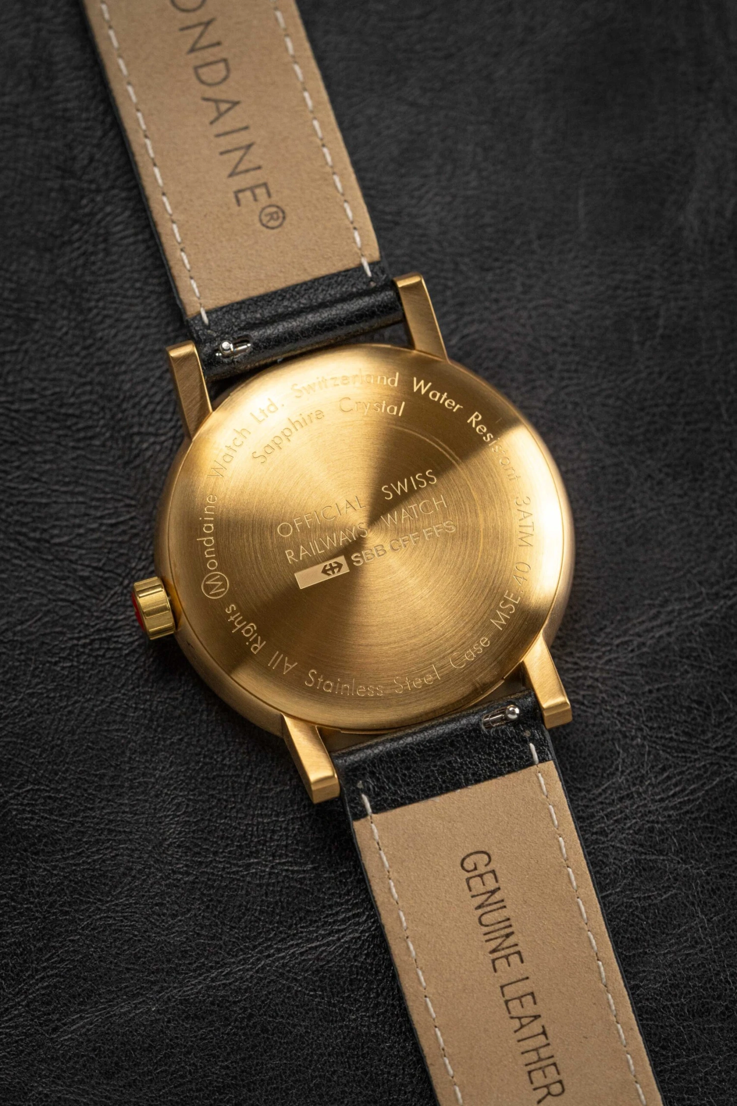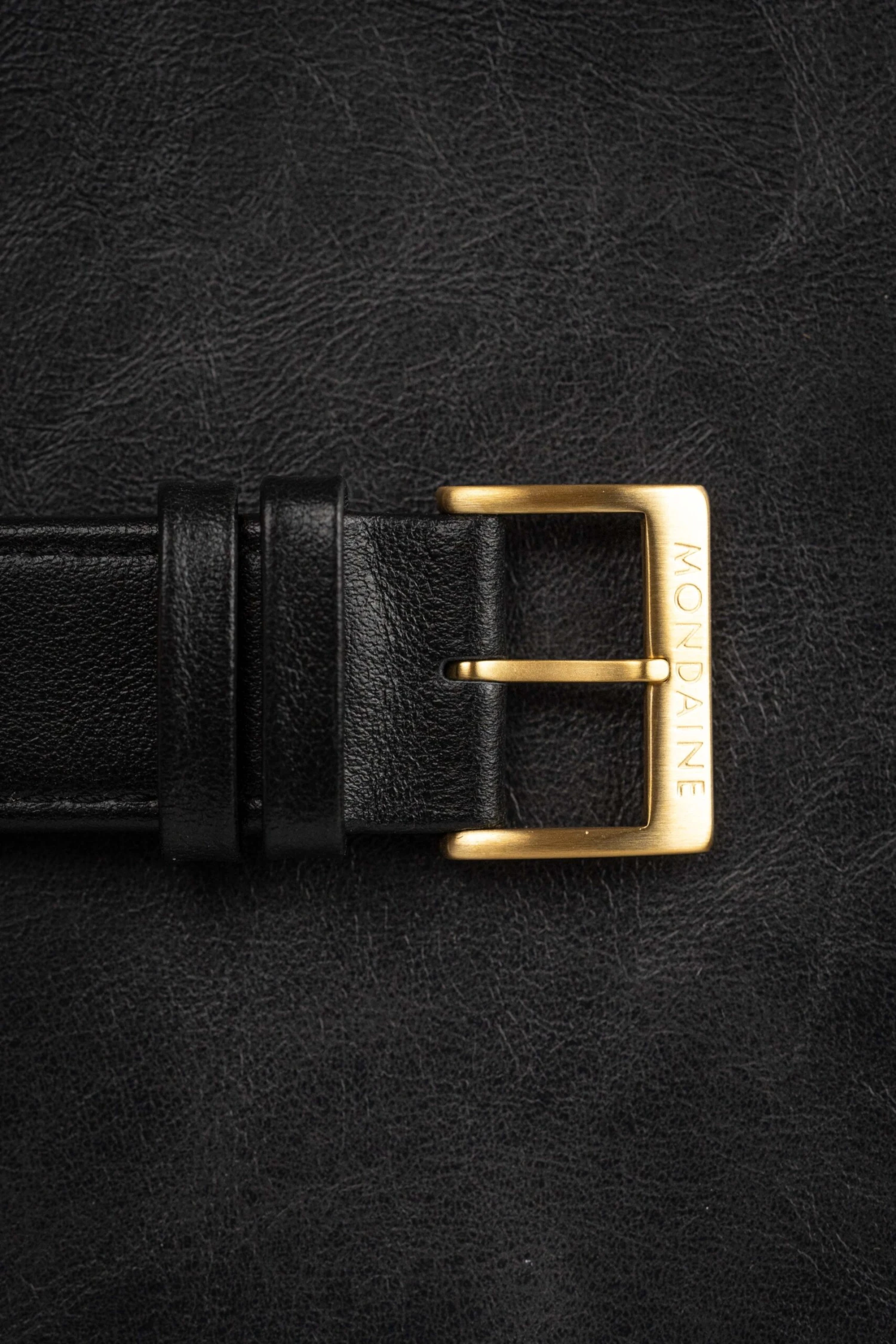 20mm Lug Width Black Leather Strap – Gold Stainless Steel Pin Buckle.