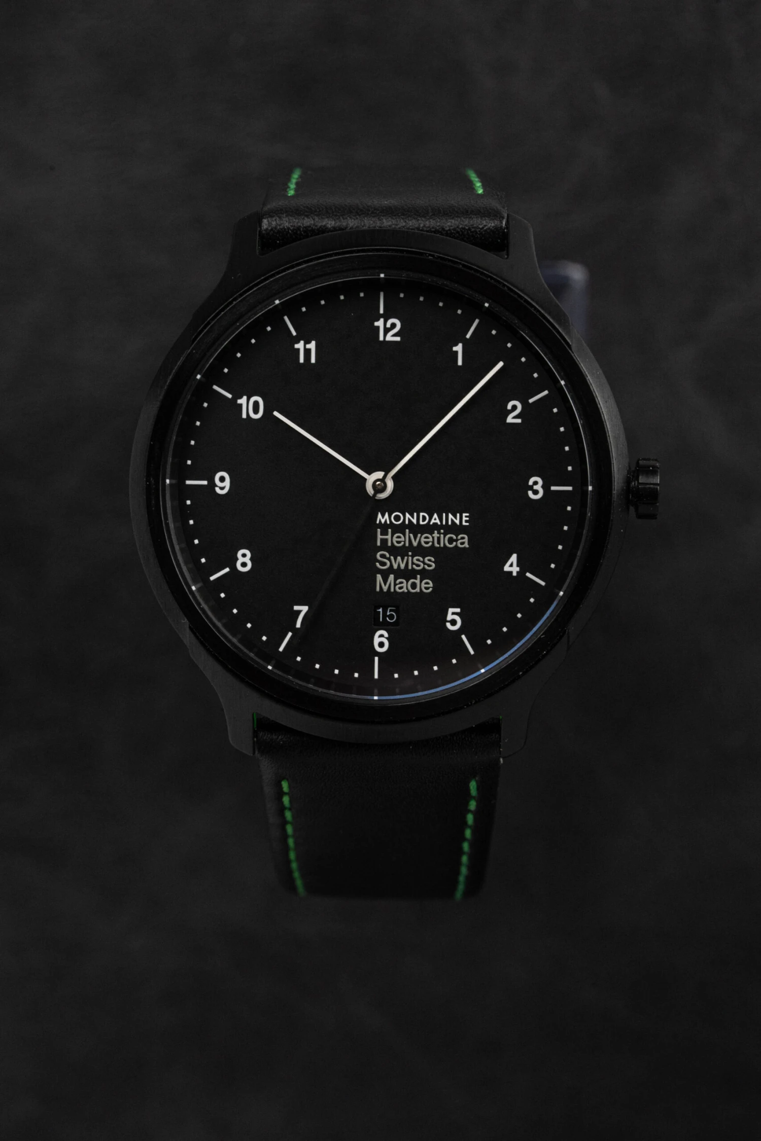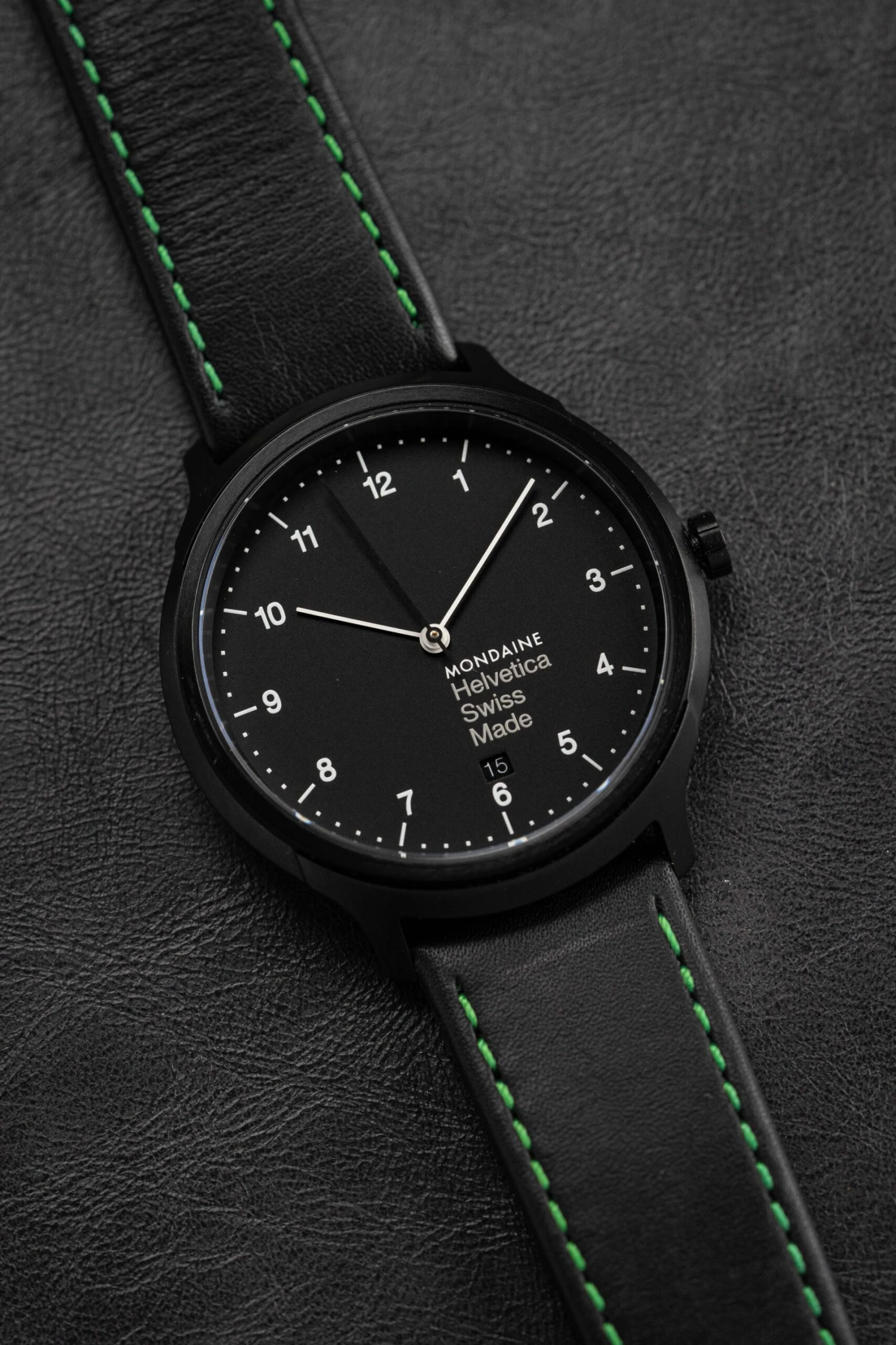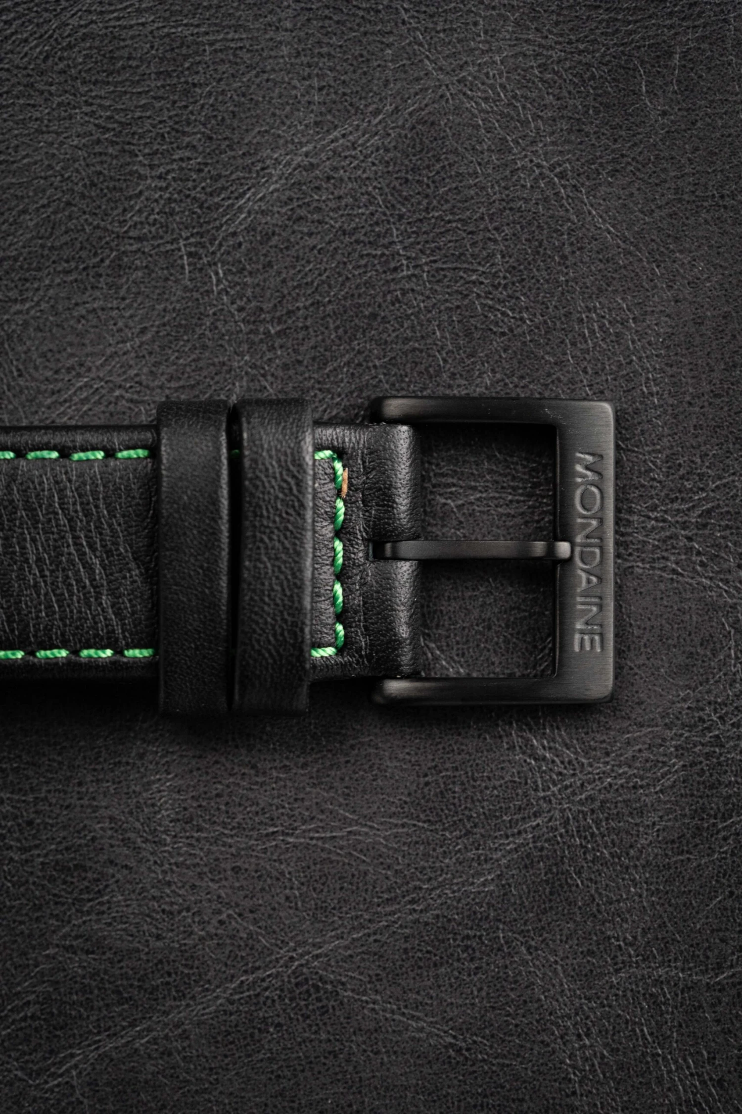 20mm Lug Width – Black Leather – Green Leather Lining – Black Stainless Steel Pin Buckle.