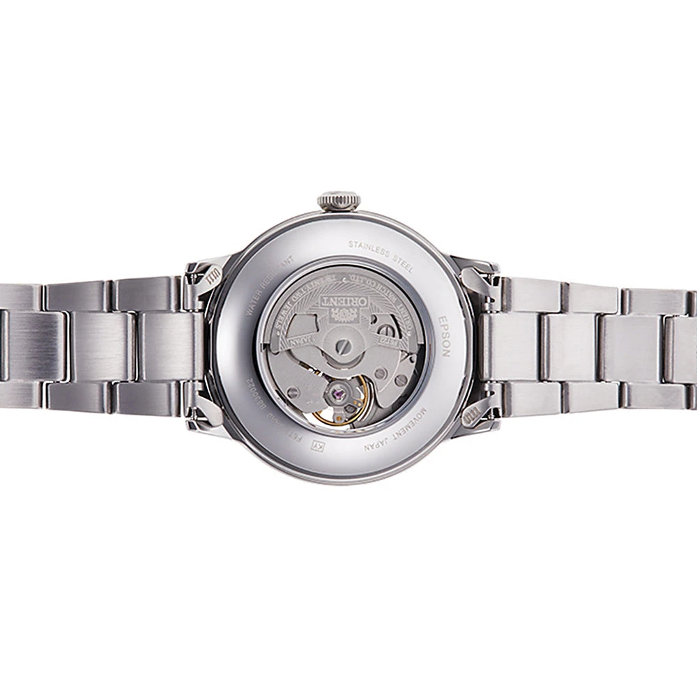 The Orient Bambino 2nd Generation Men’s Silver Watch RA-AG0026E10B is a timeless piece from the Classic automatic 41mm model family. This sophisticated timepiece features a matted, polished stainless steel case, measuring 41mm in width and 12.5mm in height, offering a sleek and refined look. The fixed bezel and pressed glass bottom case back provide a minimalist design, ideal for everyday elegance.