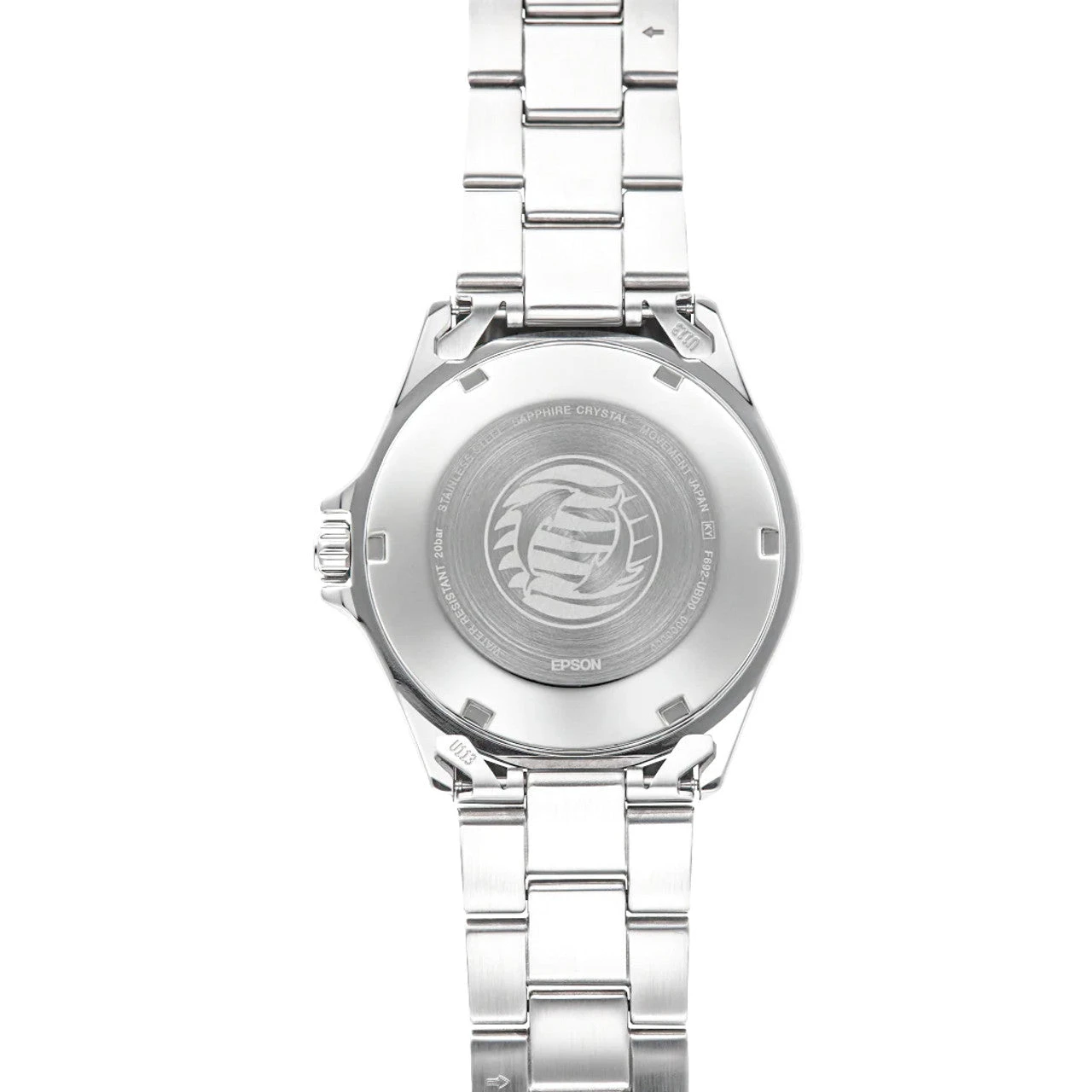 Crafted from stainless steel, the watch includes an aluminium rotating bezel and is protected by scratch-resistant sapphire crystal, ensuring durability for daily wear. Its water resistance of 200 meters (20 ATM) makes it suitable for swimming, diving, and other water-based activities without needing an aqualung.