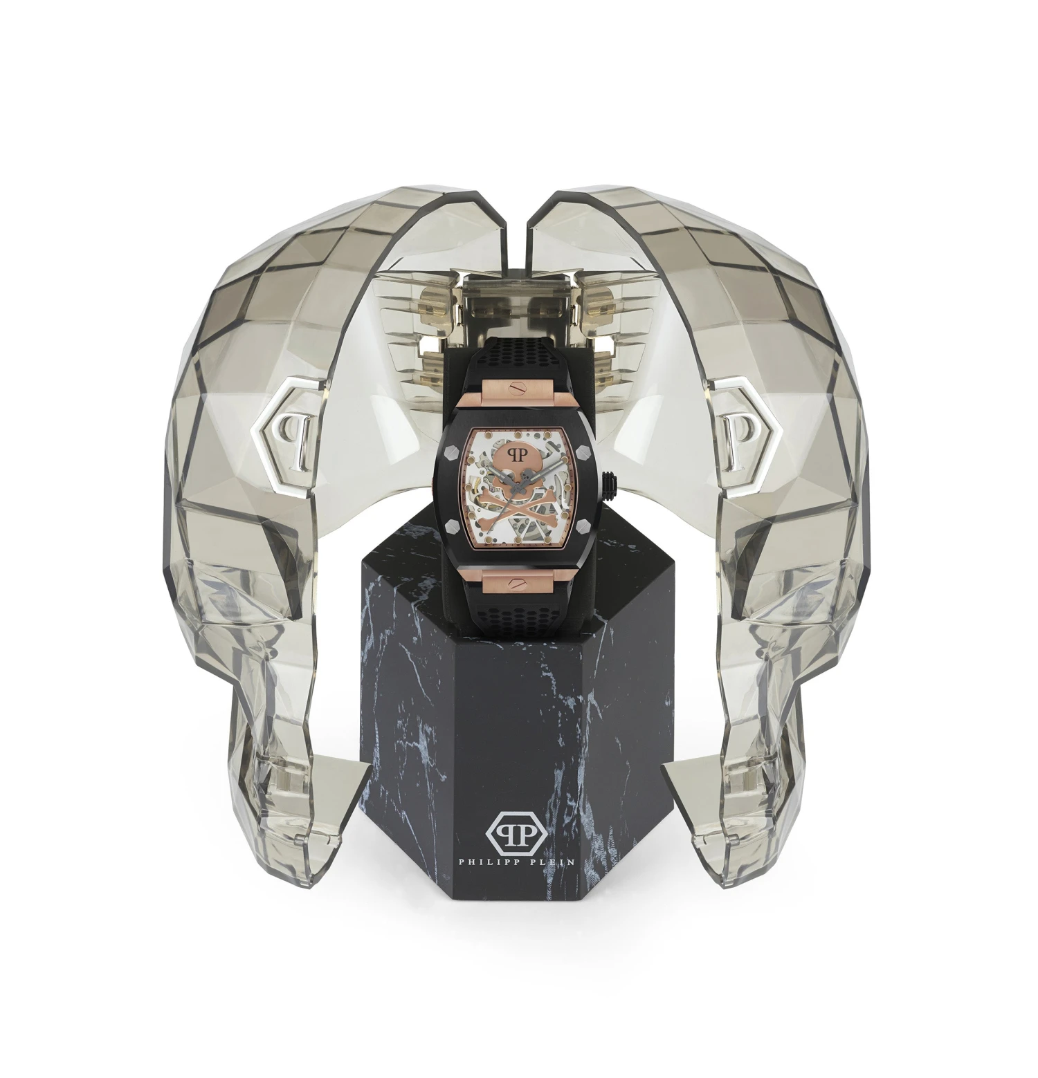 The power is unleashed with the exclusive $KELETON edition. In this exploratory series of watches lies a collection of inspiring greatness. In honor of PHILIPP PLEIN most iconic symbols, a collection inspired by the timeless $KULLBONE has been created. A work of exquisite artistry. The $kullbone at 6h and Philipp Plein Branding at 12h are key branding elements applied to give a more iconic yet sophisticated flavor to the timepiece.