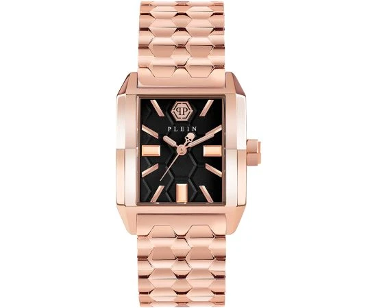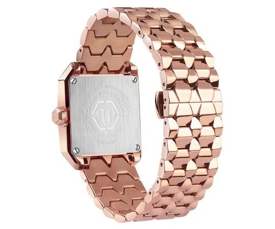 38 mm Rose Gold IP 316L Stainless Steel Case – Scratch-Resistant and Anti-Reflective Crystal – Push/Pull Crown – Solid Caseback.