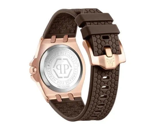 24mm Chocolate Silicone Strap with Rose Gold IP 316L Stainless Steel Pin Buckle.