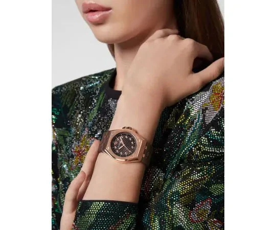 38mm Rose Gold IP 316L Stainless Steel Case – Scratch-Resistant and Anti-Reflective Crystal – Push/Pull Crown – Solid Caseback.