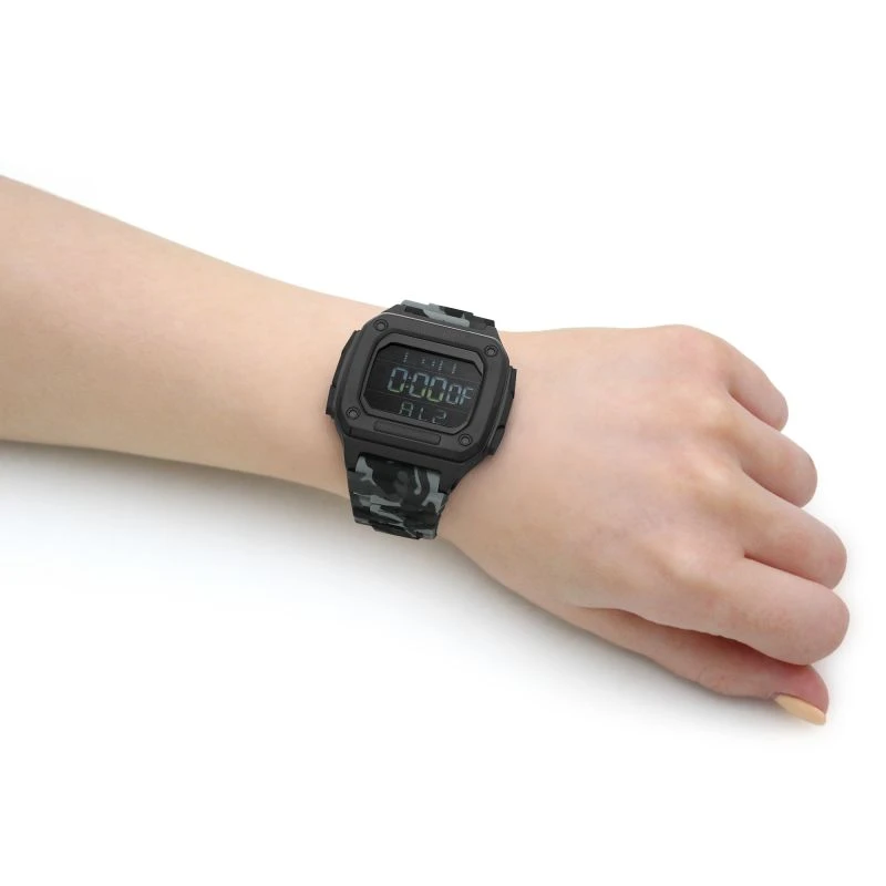 22mm Black Camo Silicone Strap with Push-Button Clasp.