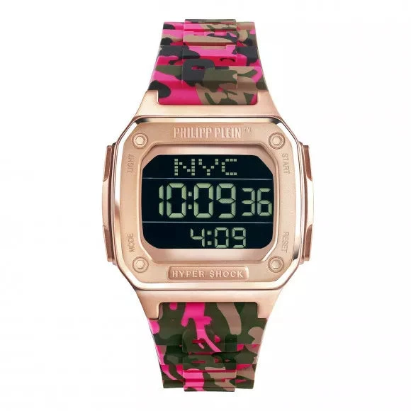 22mm Black Pink Camo Silicone Strap with Push-Button Clasp.