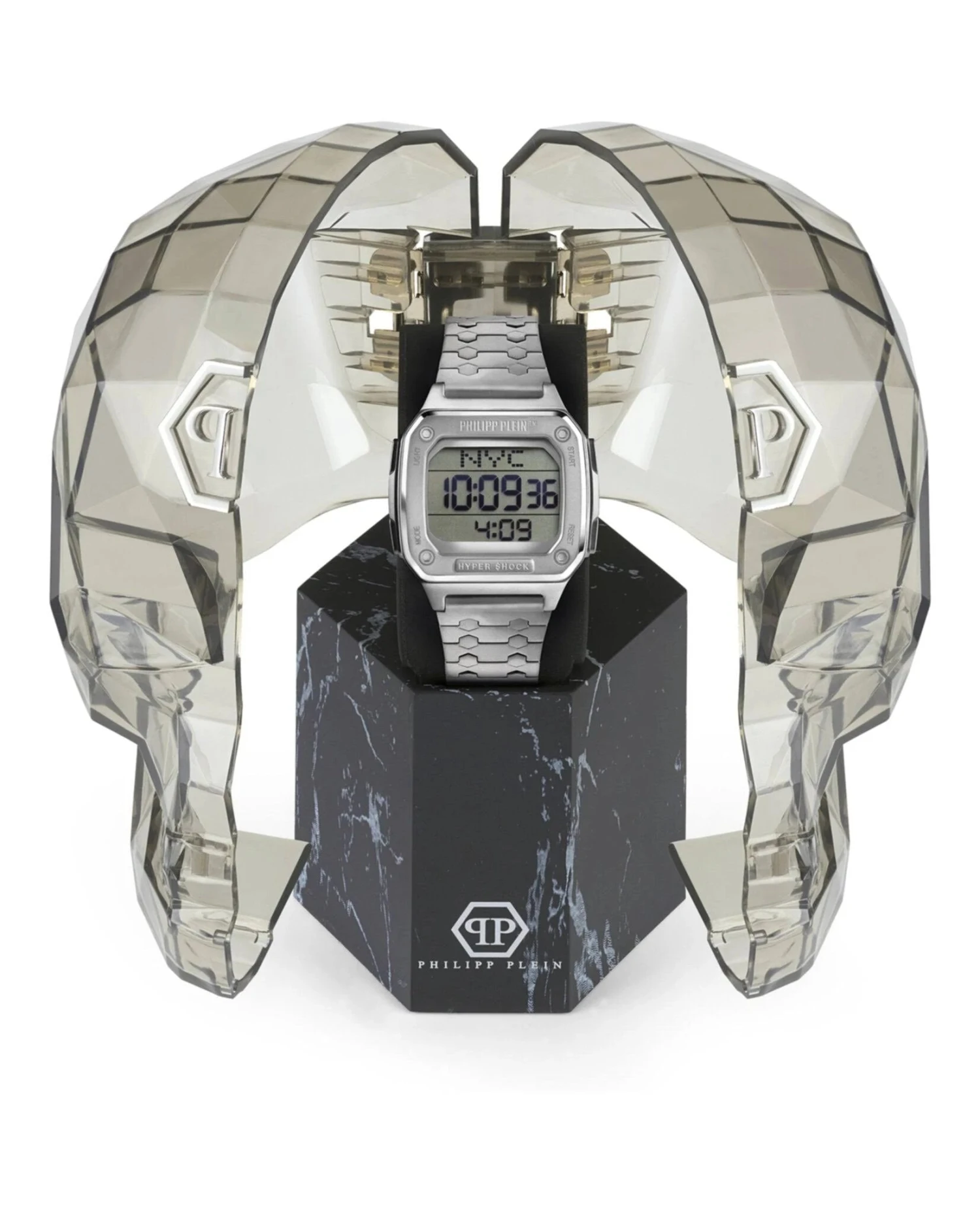 44 mm IP Silver 316L Stainless Steel Case – Scratch-Resistant and Anti-Reflective Crystal – Easy Push Buttons – Solid Caseback.