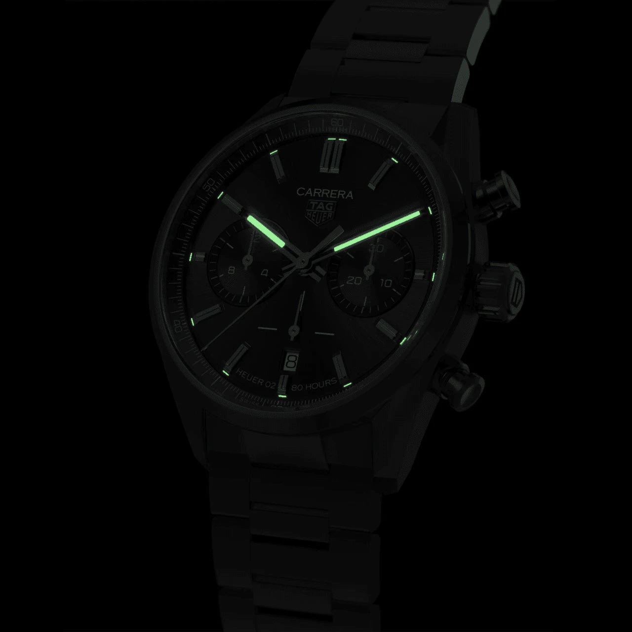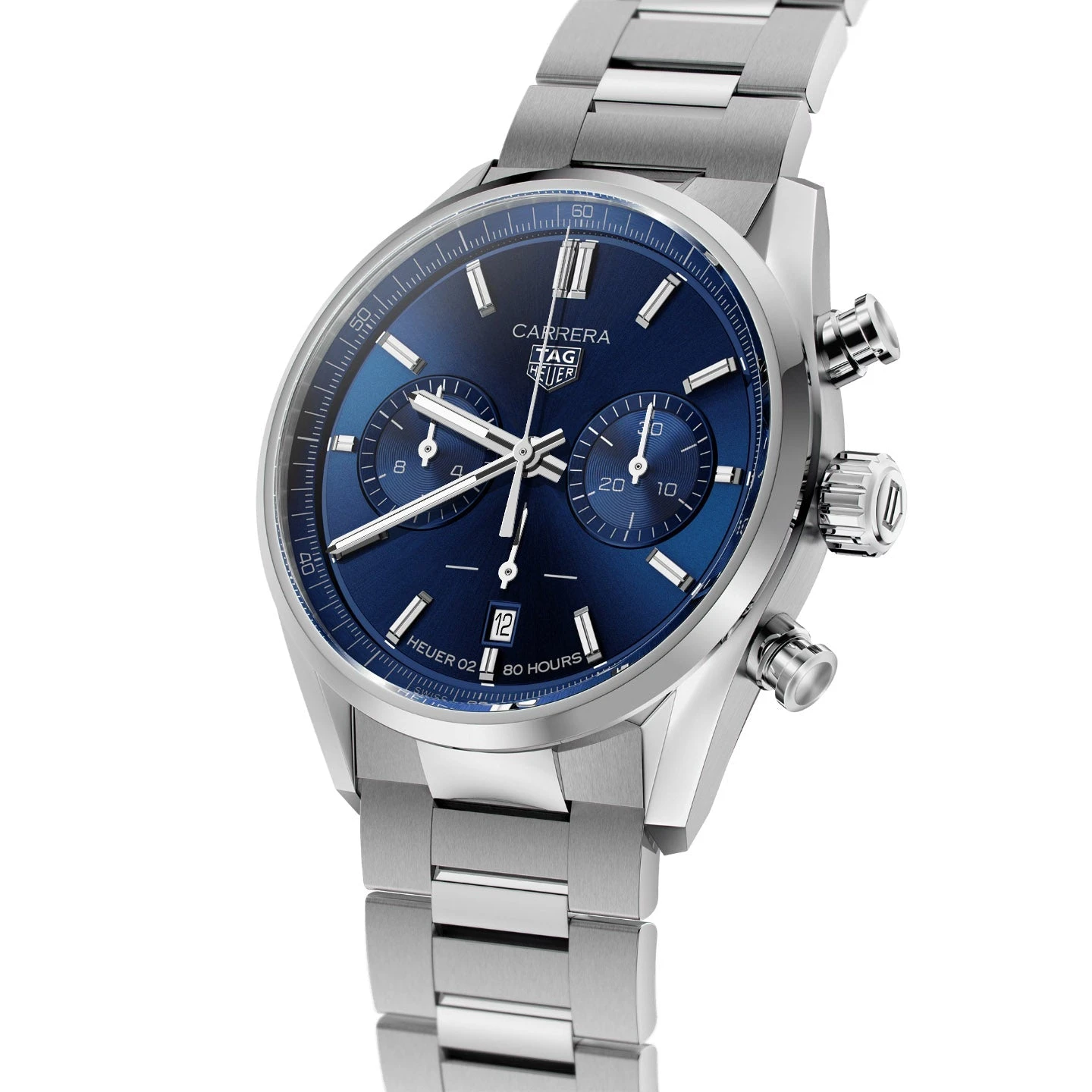 Water-resistant up to 100 metres, this timepiece is ready for any adventure. The folding clasp with double safety push-summarys ensures a secure fit, making it ideal for both casual and formal settings. The Tag Heuer Carrera Chronograph is a timeless blend of performance, style, and Swiss craftsmanship.